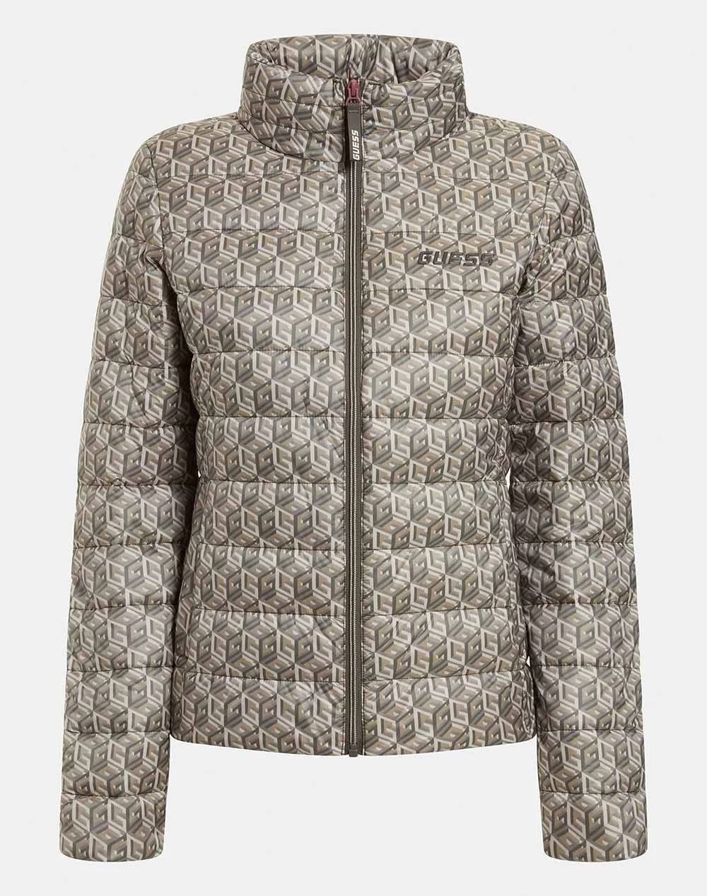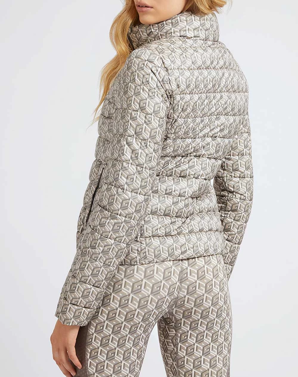 Γυναικείο φουσκωτό μπουφάν με κουκούλα, μοτίβο το λογότυπο της εταιρείας, με ψηλό λαιμό, τσέπες και κλείσιμο με φερμουάρ. Σε στενή εφαρμογή (Σύνθεση: 52% Πολυεστέρας, 48% Πολυαμίδιο)