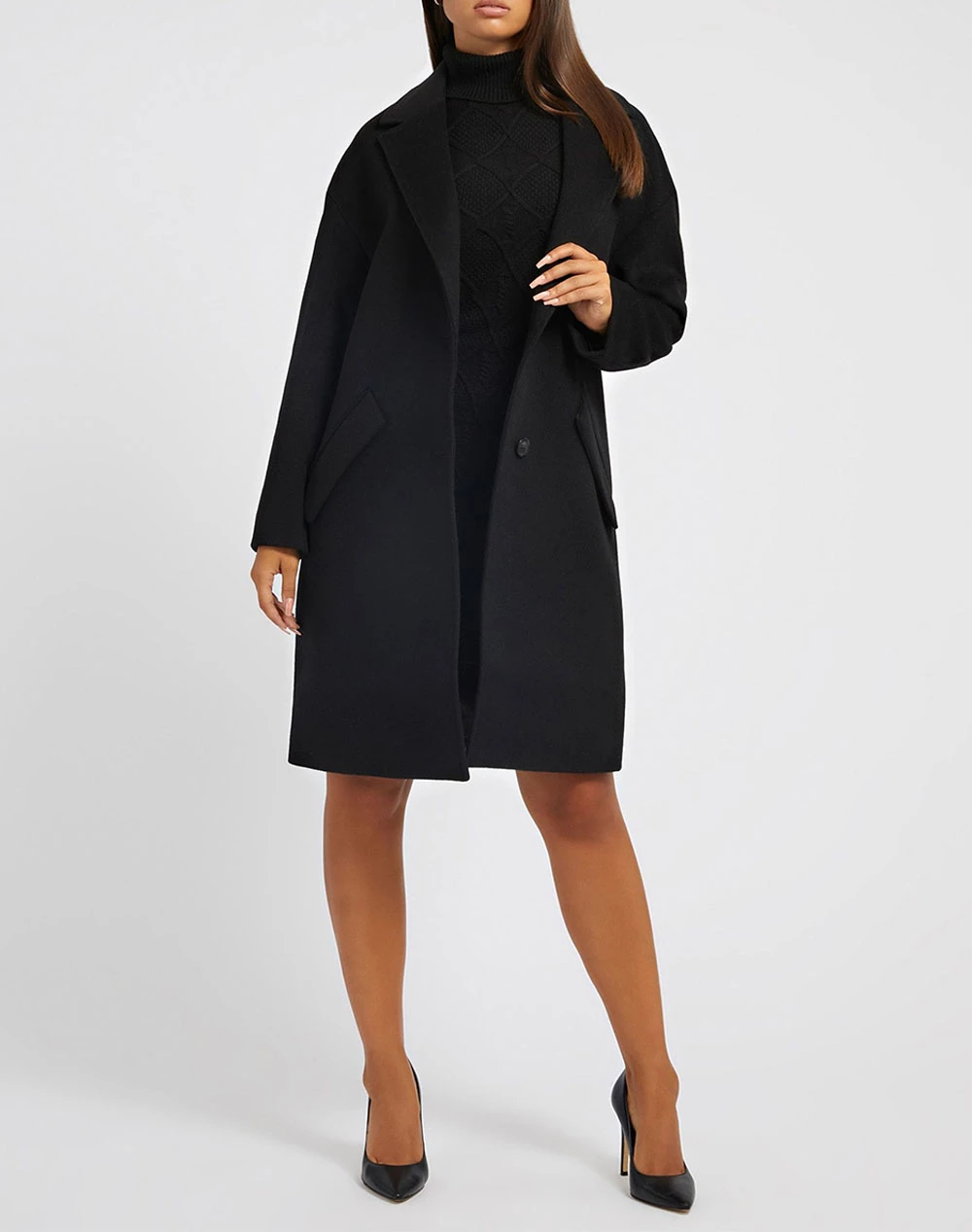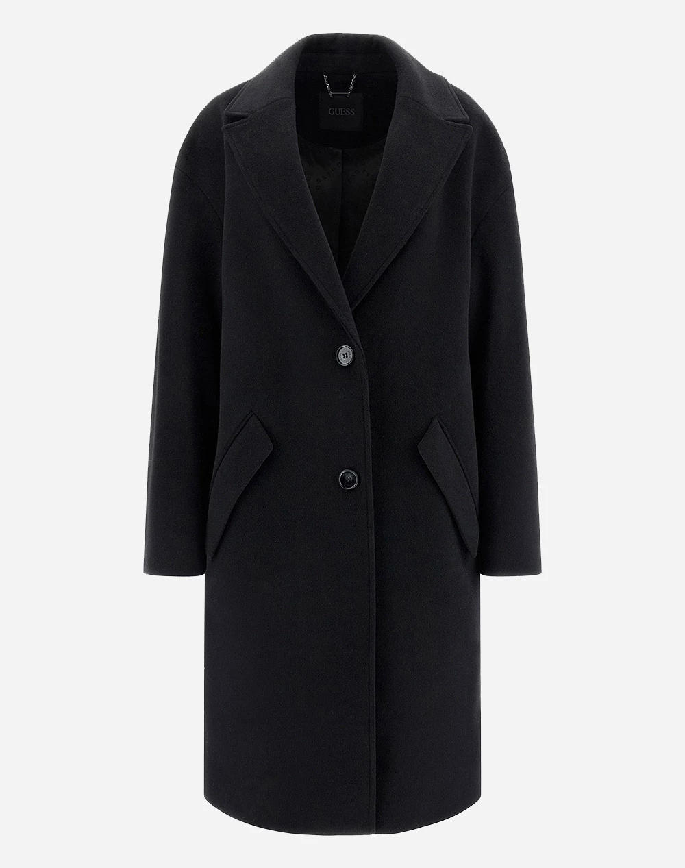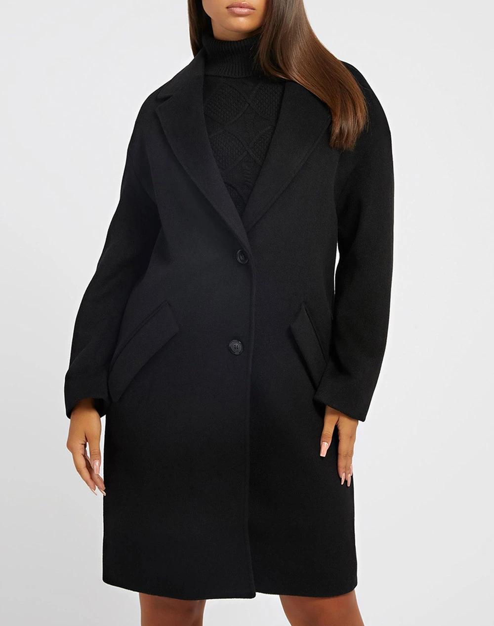 Παλτό μονόχρωμο σε κανονική εφαρμογή, με πλαϊνές τσέπες και κλείσιμο με κουμπιά. (Σύνθεση: Μαλλινό μείγμα)