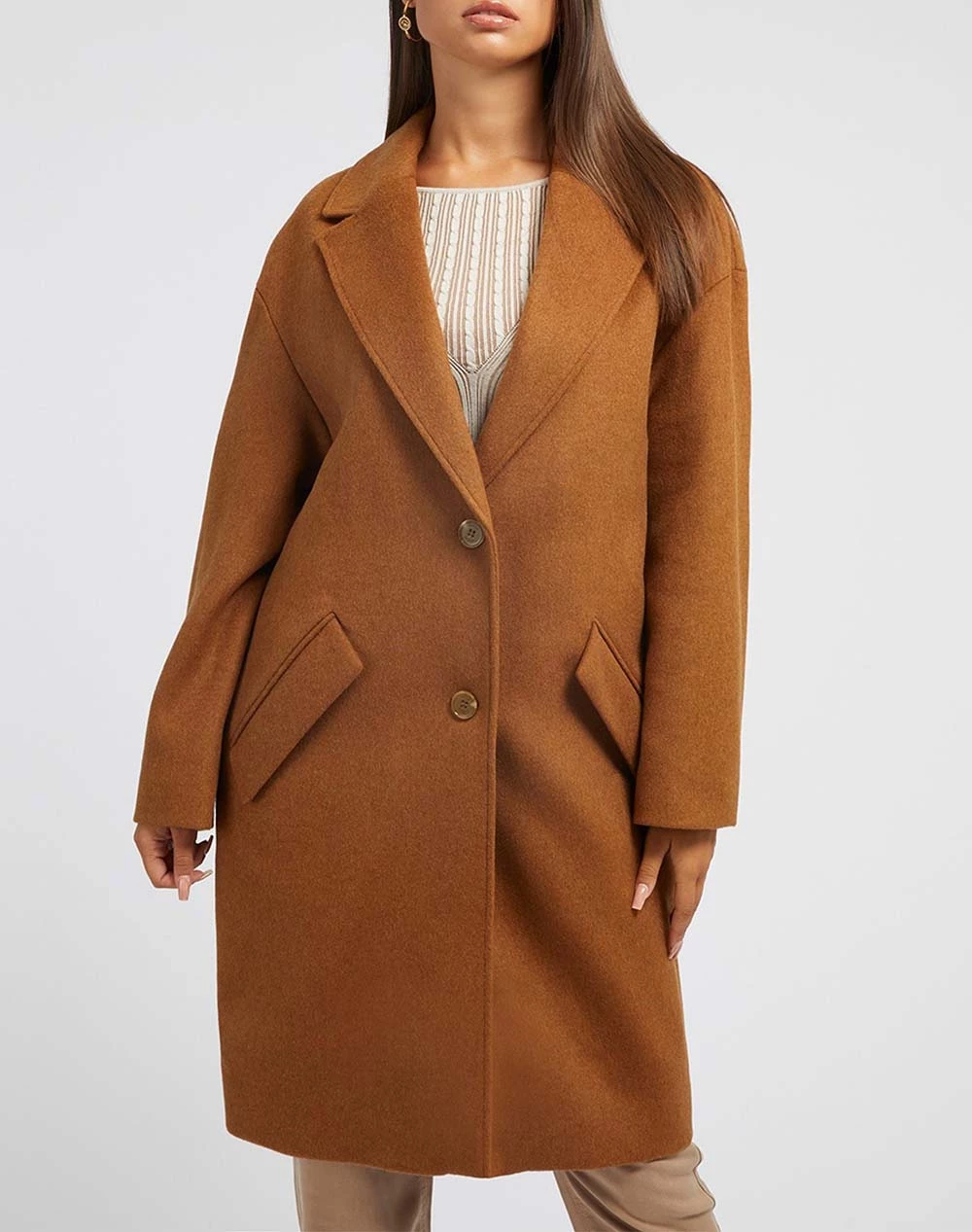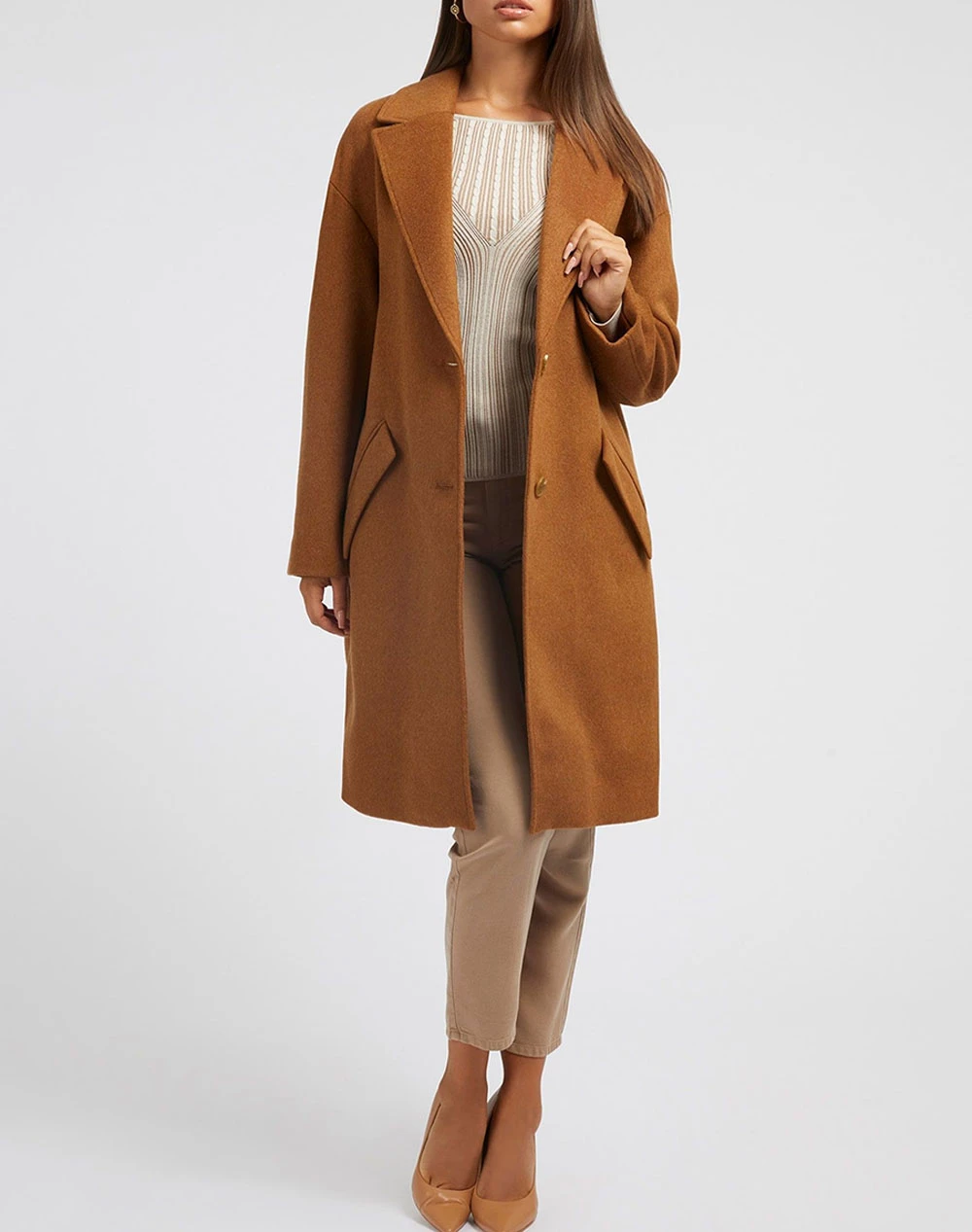 Παλτό μονόχρωμο σε κανονική εφαρμογή, με πλαϊνές τσέπες και κλείσιμο με κουμπιά. (Σύνθεση: Μαλλινό μείγμα)
