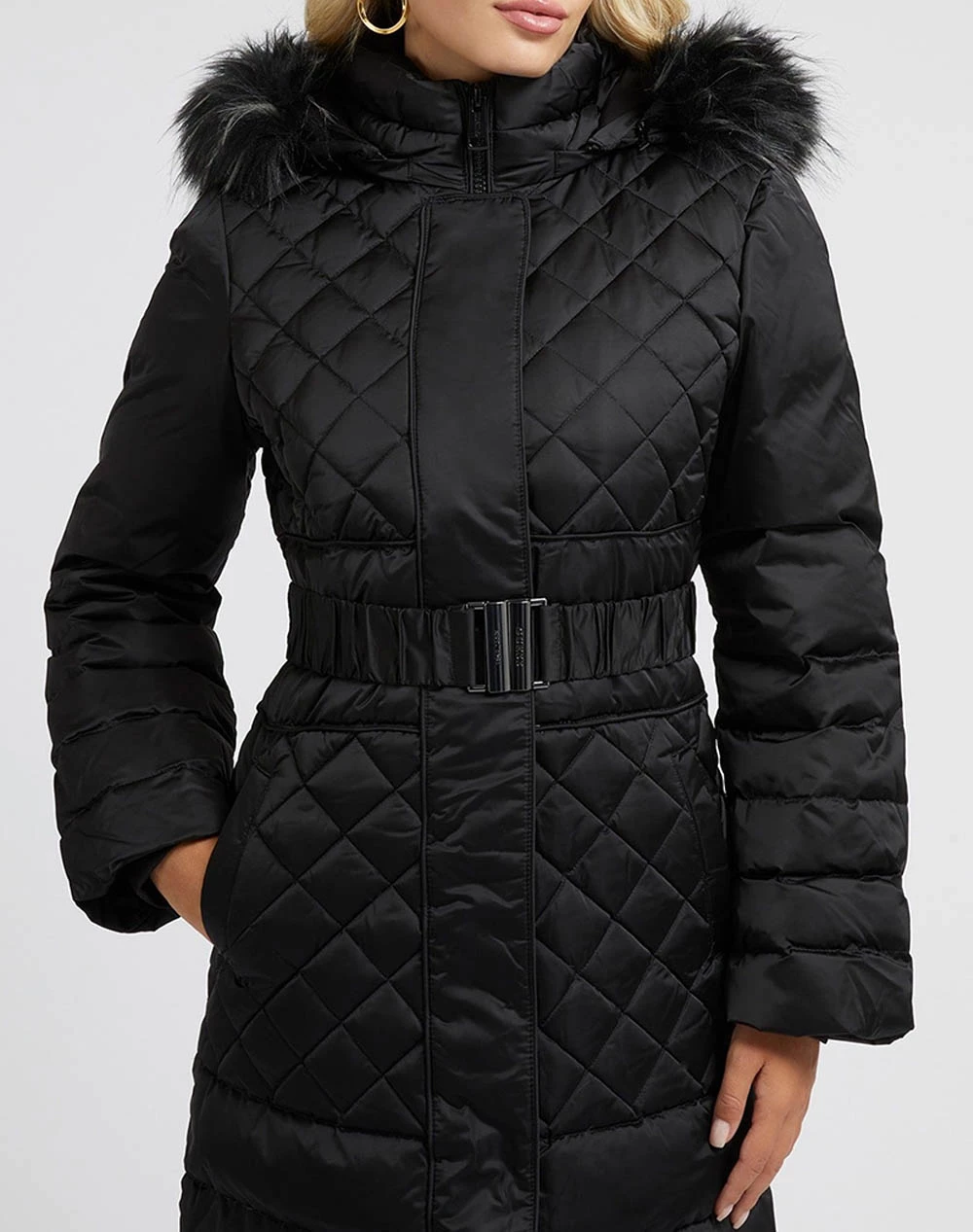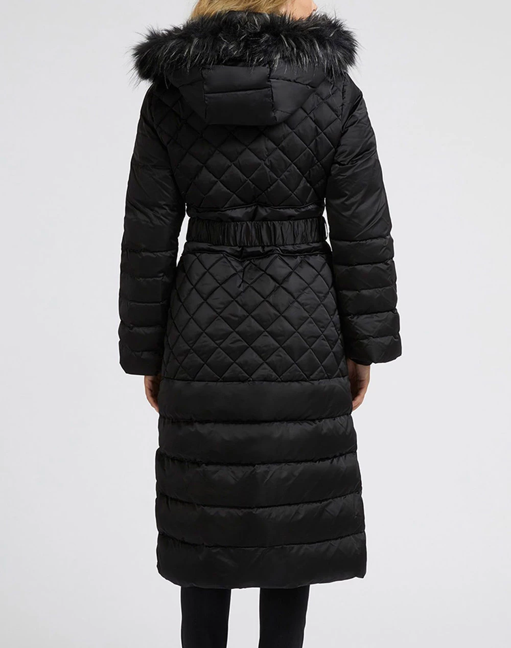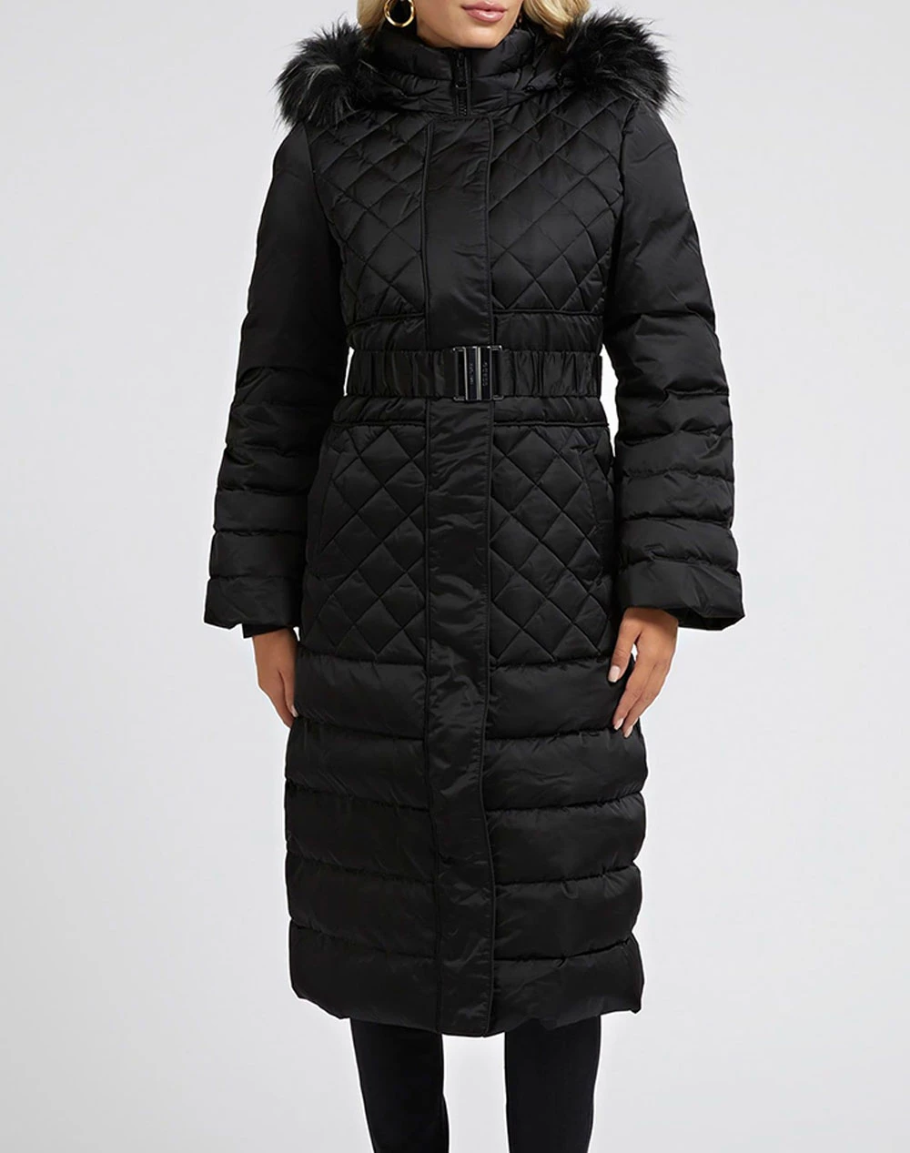 Γυναικείο φουσκωτό μπουφάν, με καπιτονέ εφέ, κουκούλα με γούνινη λεπτομέρεια, ψηλό γιακά και κλείσιμο με φερμουάρ. Με εσωτερική επένδυση από πούπουλα πάπιας. (Σύνθεση: 100% Πολυεστέρας)