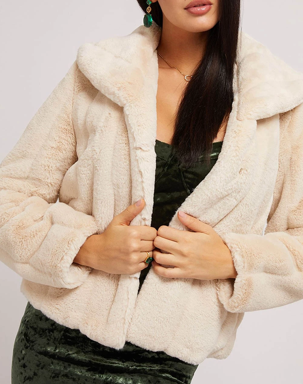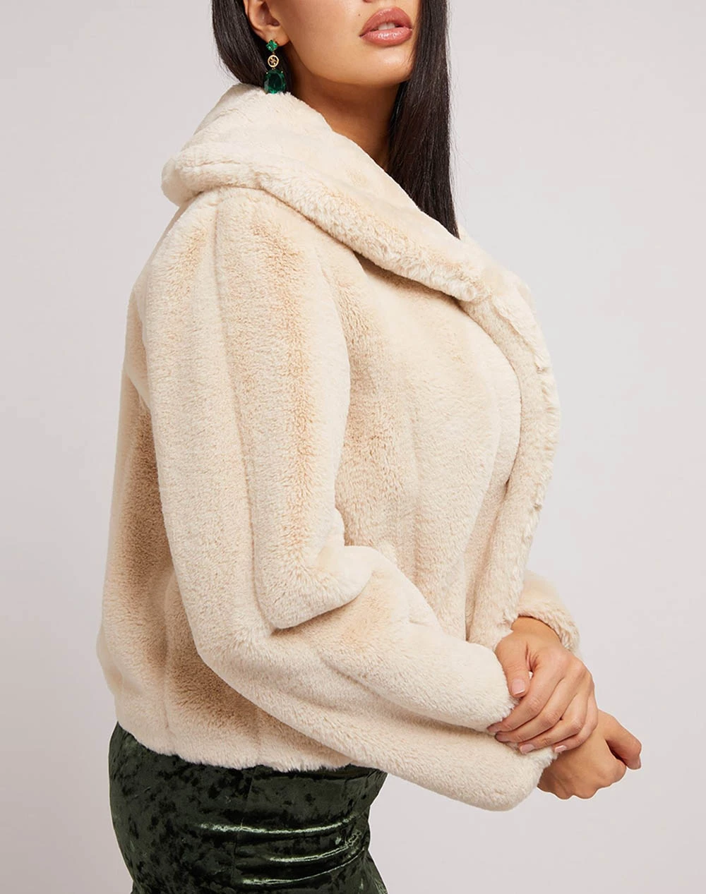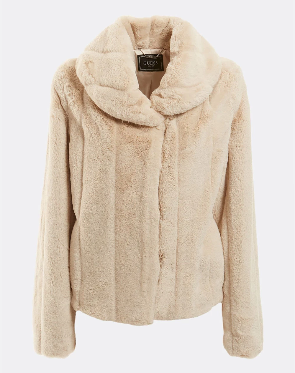 Μπουφάν μονόχρωμο από οικολογική γούνα, με γιακά, δύο πλαίνές τσέπες και κρυφό κλείσιμο με γάντζους. Σε κανονική εφαρμογή. (Σύνθεση: 100% Πολυεστέρας)