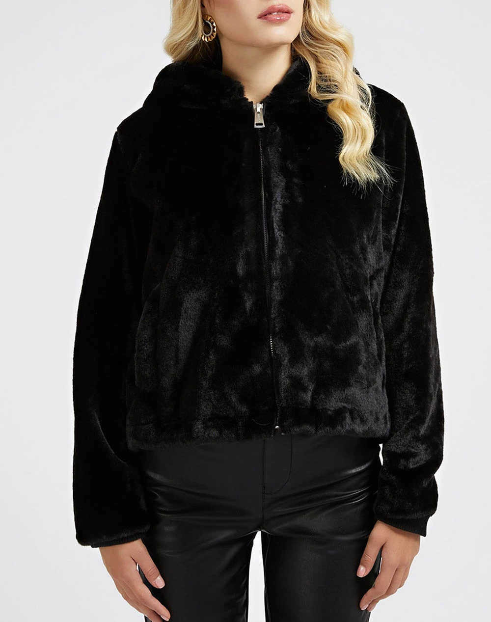 Γυναικείο Jacket με κουκούλα από οικολογική γούνα, με πλαϊνές τσέπες και κλείσιμο με φερμουάρ. Διαθέτει το λογότυπο της εταιρείας στη πλάτη. (Σύνθεση: 100% Πολυεστέρας)