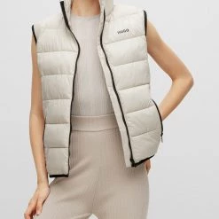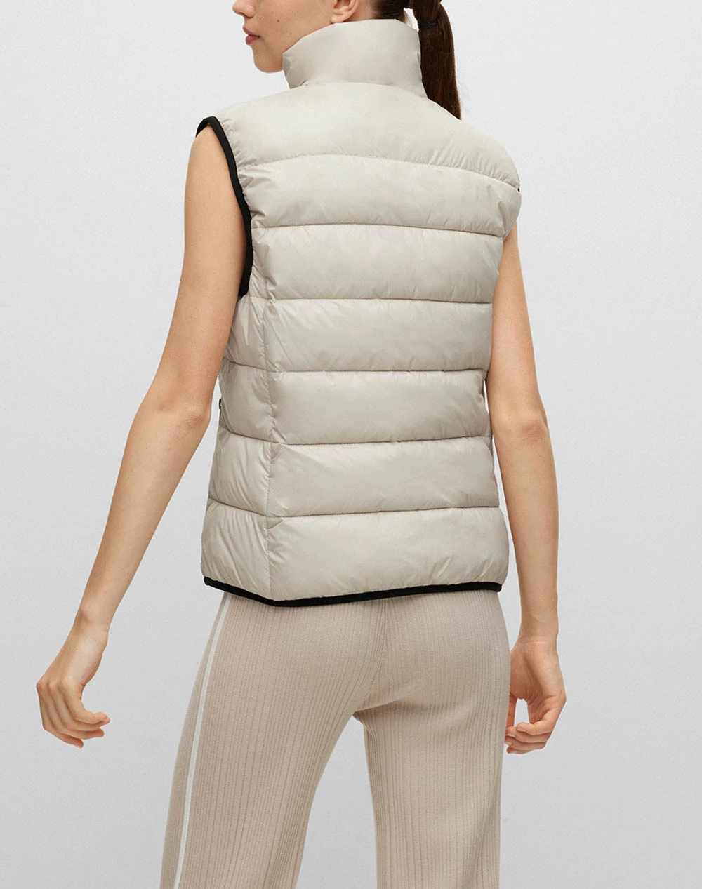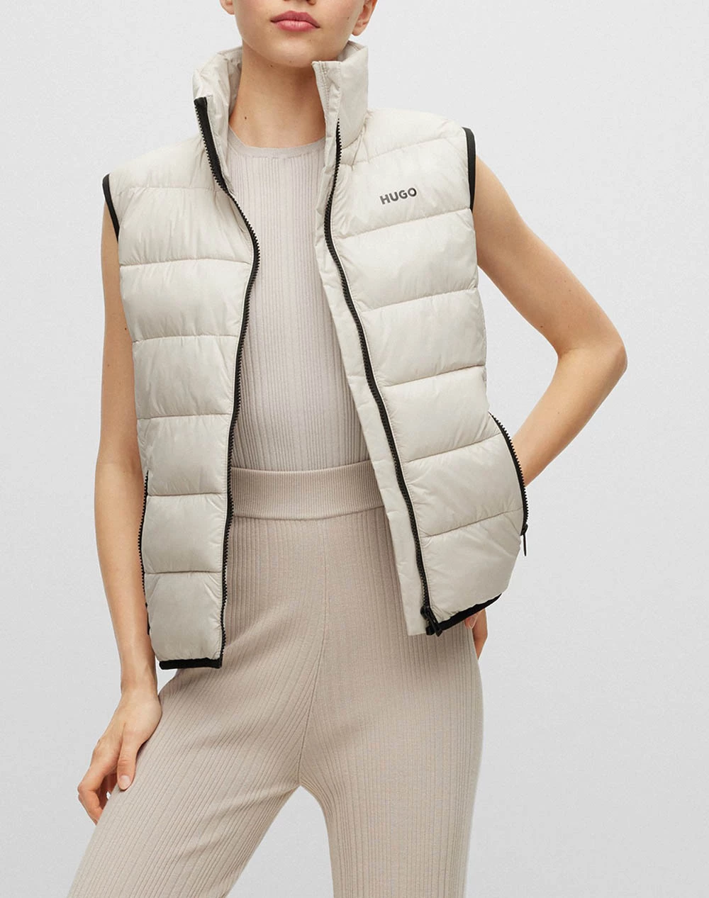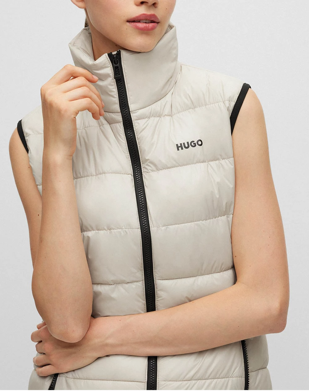 Γυναικείο αμάνικο μπουφάν σε κανονική γραμμή, με τσέπες στο πλάι, κλείσιμο με φερμουάρ, ψηλό λαιμό και τύπωμα με το λογότυπο μπροστά. ( Σύνθεση: 100% Πολυαμίδιο )