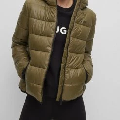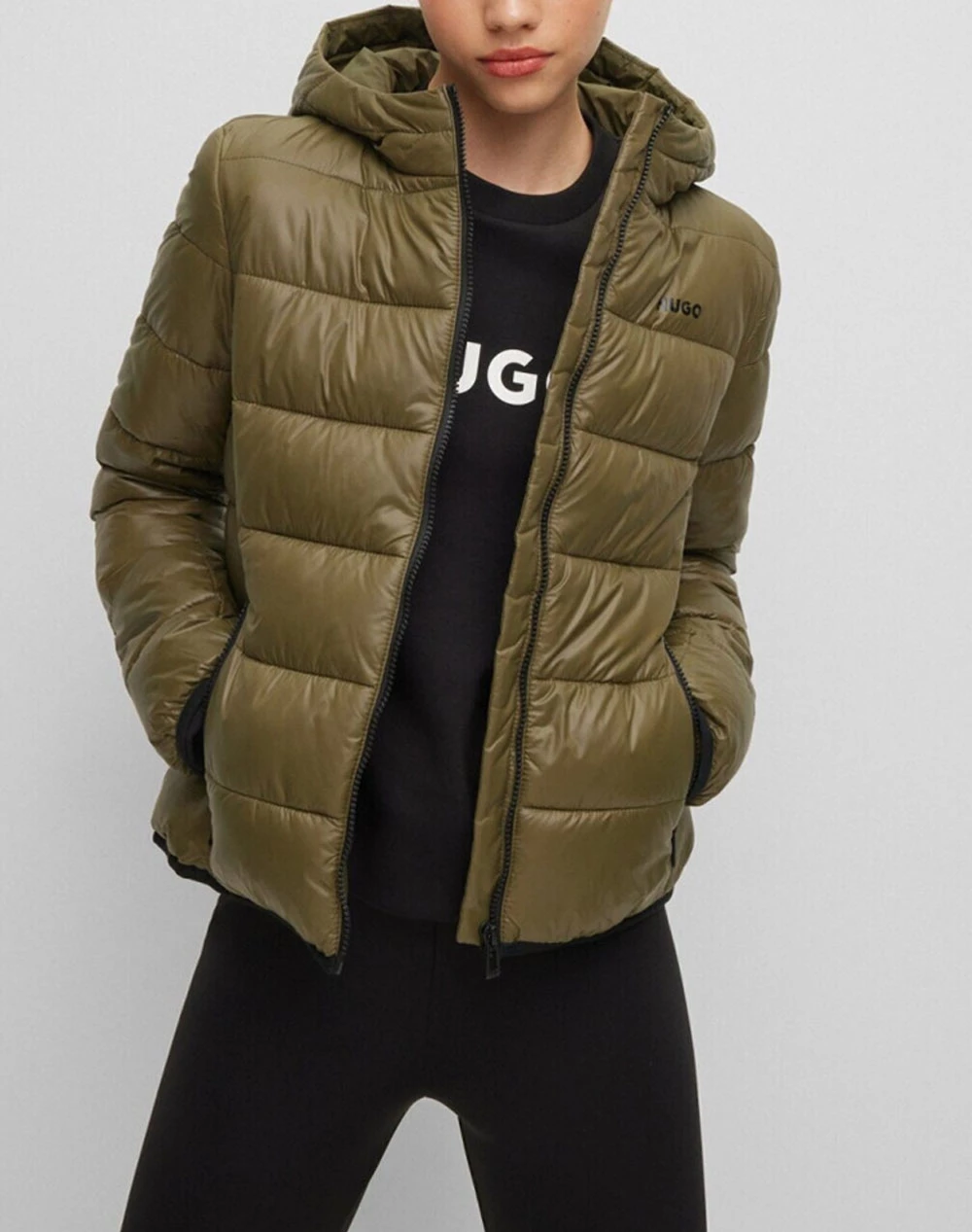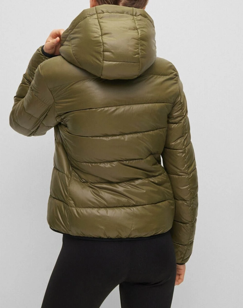 Γυναικείο μπουφάν σε κανονική γραμμή, με τσέπες στο πλάι, κουκούλα και κλείσιμο με φερμουάρ. ( Σύνθεση: Συνθετικό )