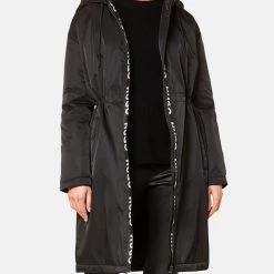 Γυναικείο μπουφάν σε κανονική γραμμή, με ρυθμιζόμενη κουκούλα, με τσέπες στο πλάι και ταινία λογότυπου μπροστά. ( Σύνθεση: Πολυεστέρας )