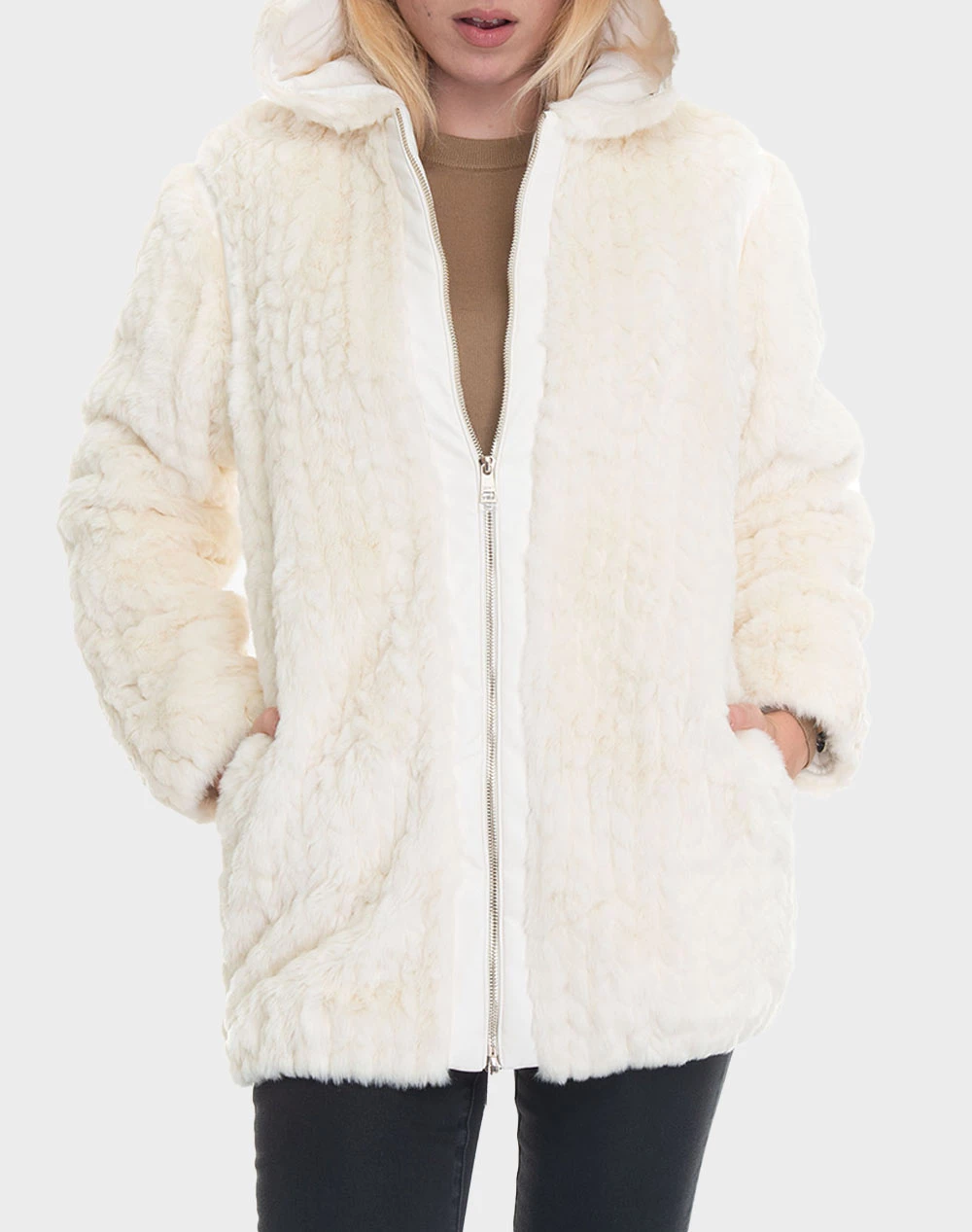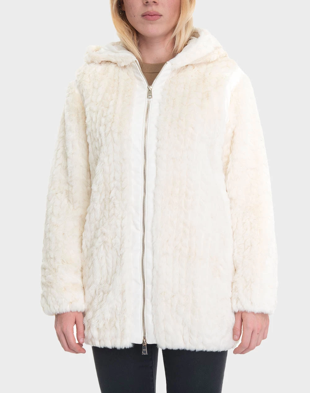 Γυναικείο παλτό σε άνετη γραμμή, με τσέπες στο πλάι, λάστιχο στο κάτω μέρος, κουκούλα και κλείσιμο με φερμουάρ. ( Σύνθεση: 100% Πολυεστέρας )
