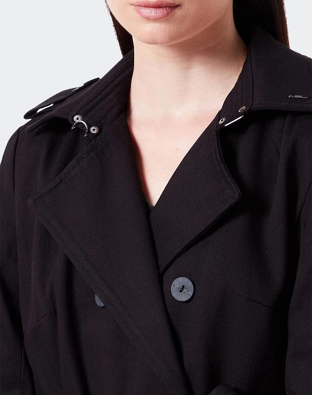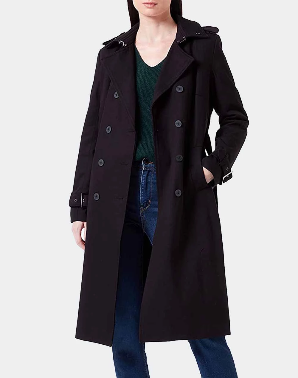 Καμπαρντίνα μονόχρωμη τύπου Blazer, με ζώνη ίδιου υφασμάτος στη μέση, πλαϊνές τσέπες και κλείνει με κουμπιά μπροστά. (Σύνθεση: 100% Βαμβάκι)