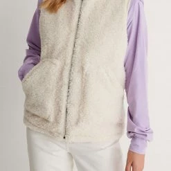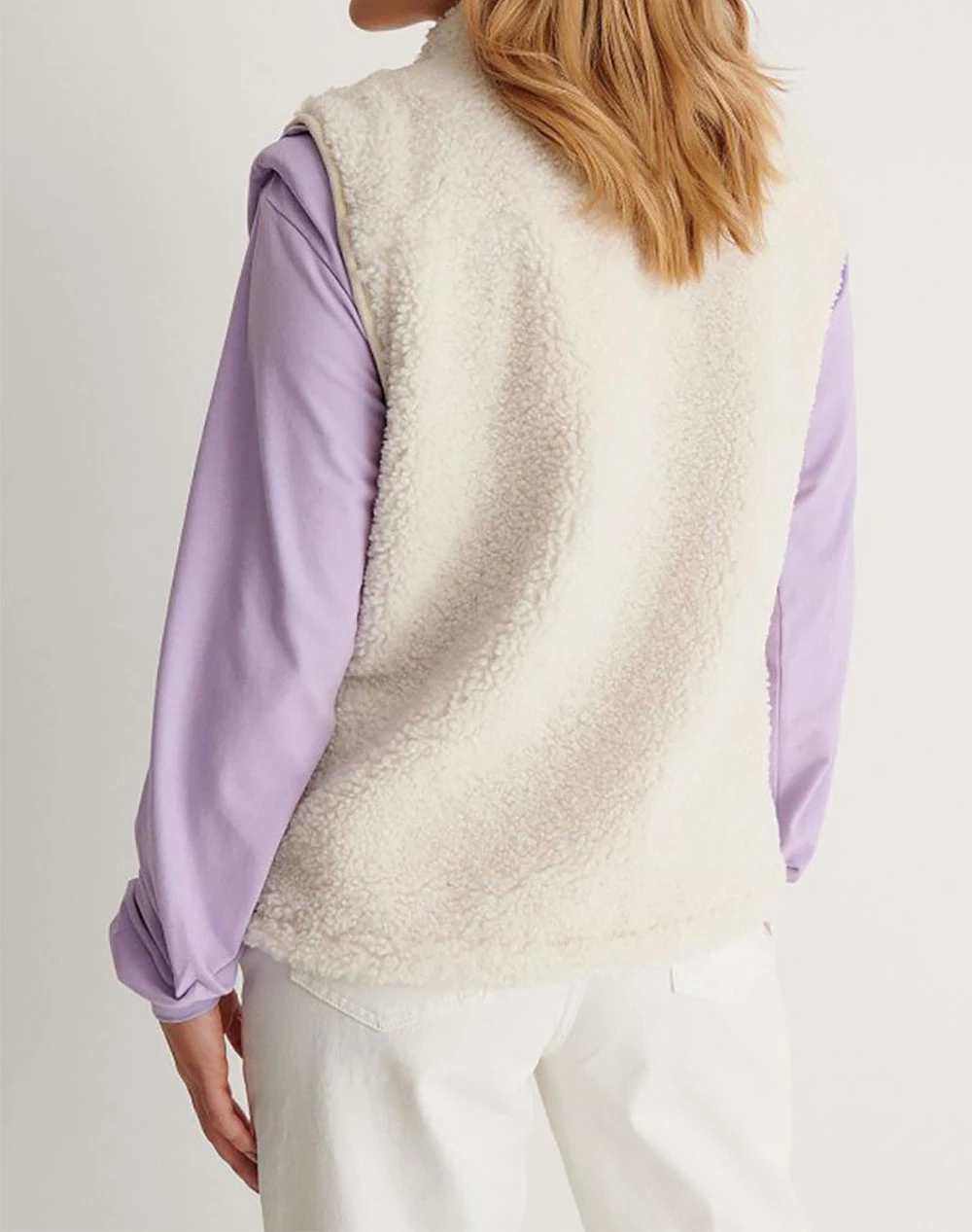 Μπουφάν τύπου αμάνικο γυναικείο μονόχρωμο, σε κανονική γραμμή, με γούνινη επένδυση και κλείσιμο με μπροστινό φερμουάρ (Σύνθεση: 100% Πολυεστέρας)