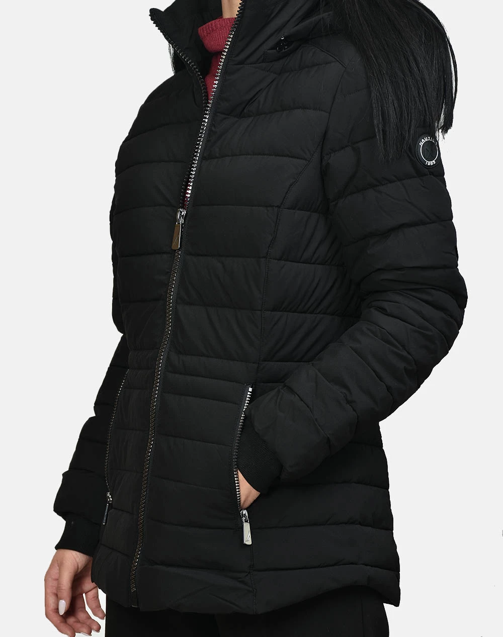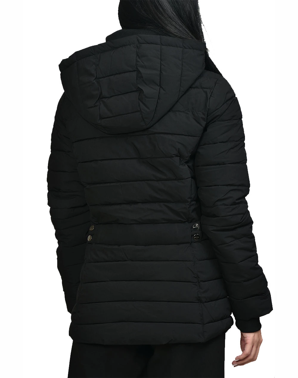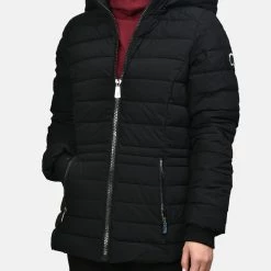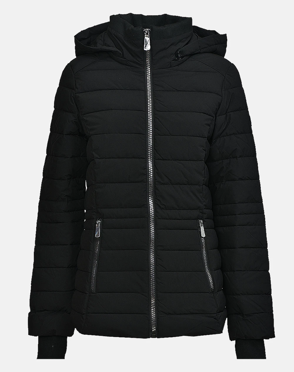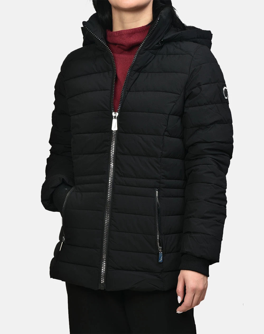 Γυναικείο μπουφάν τύπου puffer, σε κανονική γραμμή, με τσέπες στο πλάι, κουκούλα, κέντημα στο μανίκι με το λογότυπο της εταιρείας και κλείσιμο με φερμουάρ. ( Σύνθεση: 100% Πολυεστέρας )