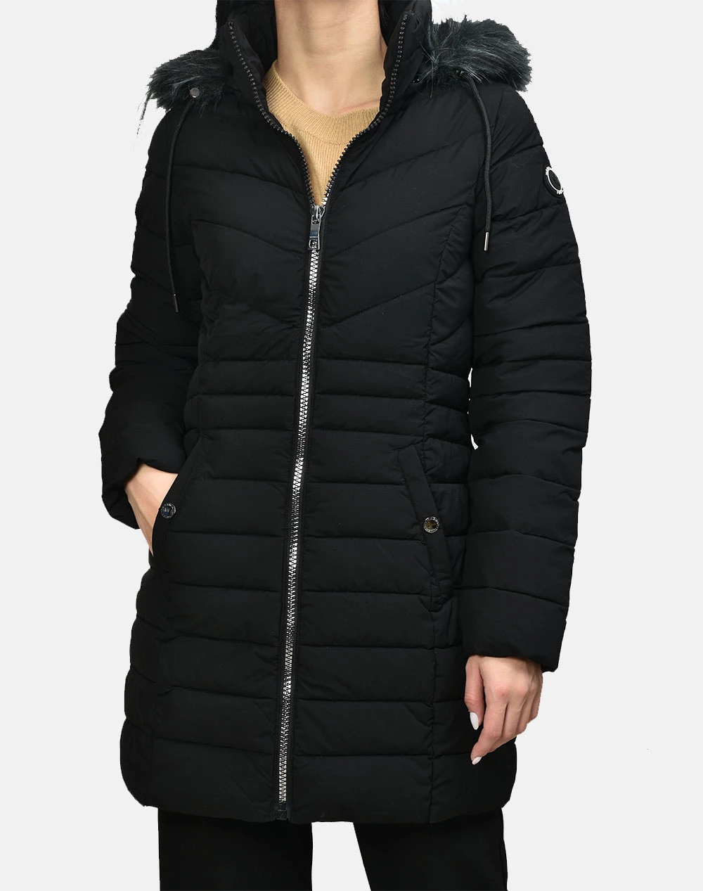 Γυναικείο μπουφάν τύπου parka, σε κανονική γραμμή, με κουκούλα με γούνα, τσέπες στο πλάι και κλείσιμο με φερμουάρ. ( Σύνθεση: 100% Πολυεστέρας )