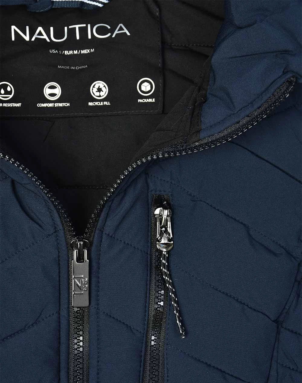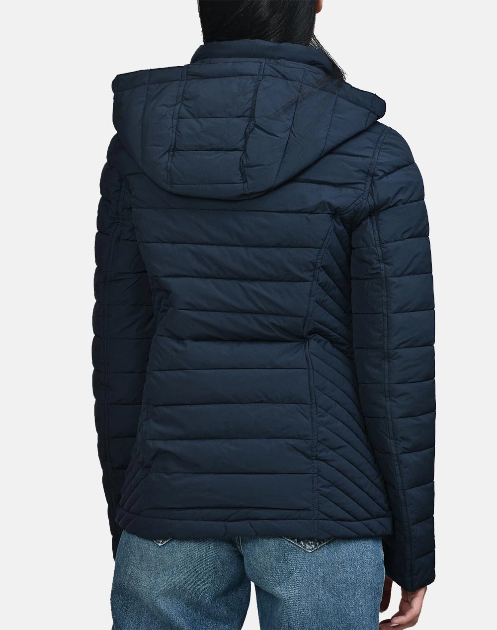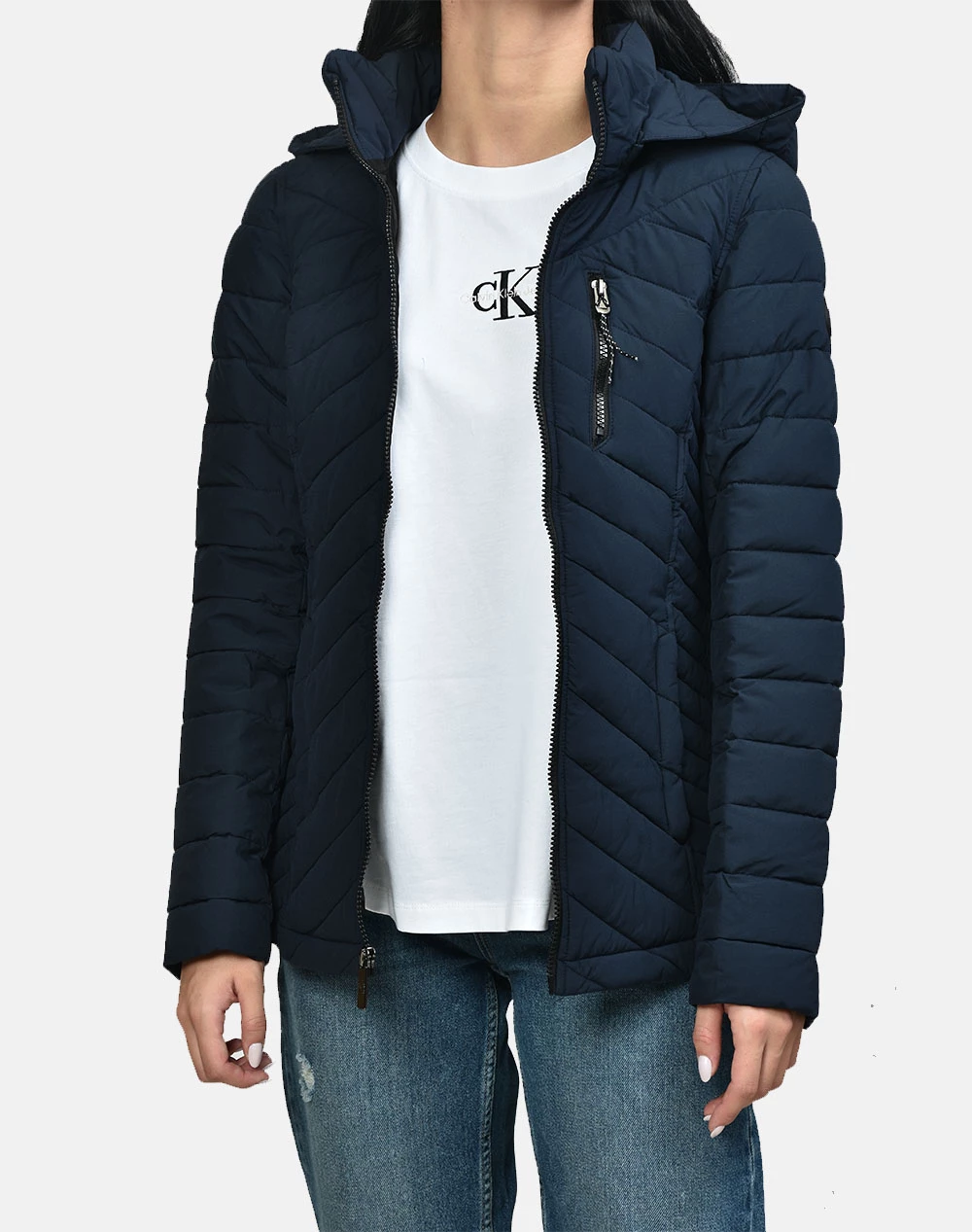 Γυναικείο μπουφάν τύπου puffer σε κανονική γραμμή, με τσέπες στο πλάι και στο στήθος, κουκούλα και κλείσιμο με φερμουάρ. ( Σύνθεση: 100% Πολυεστέρας )