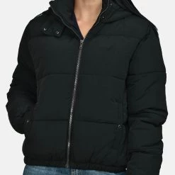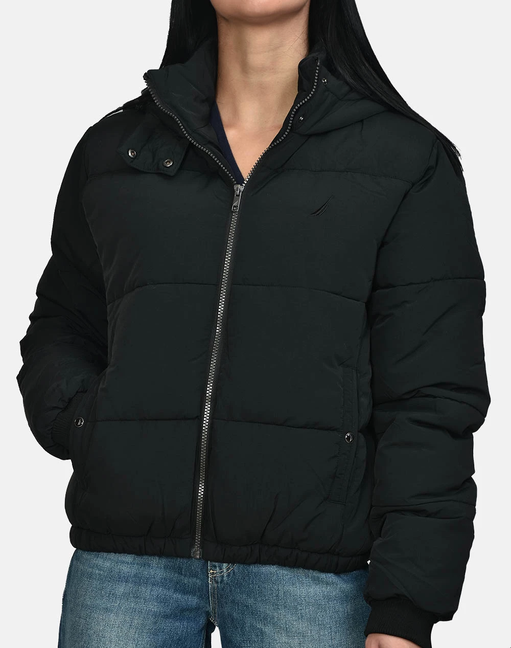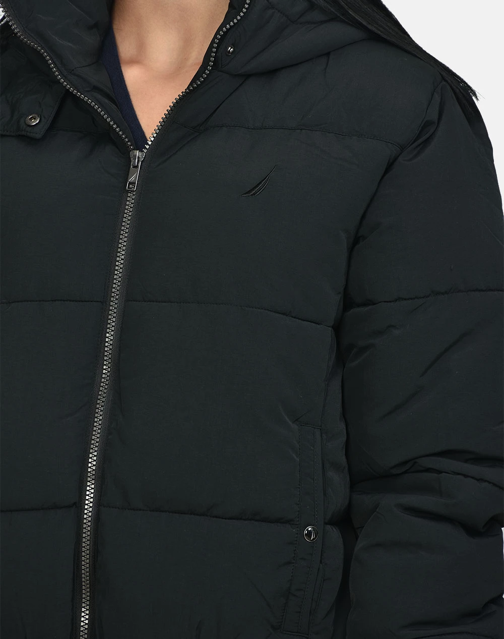 Γυναικείο μπουφάν σε κανονική γραμμή, με τσέπες στο πλάι, αποσπώμενη κουκούλα και κλέισιμο με φερμουάρ. ( Σύνθεση: 100% Πολυεστέρας )