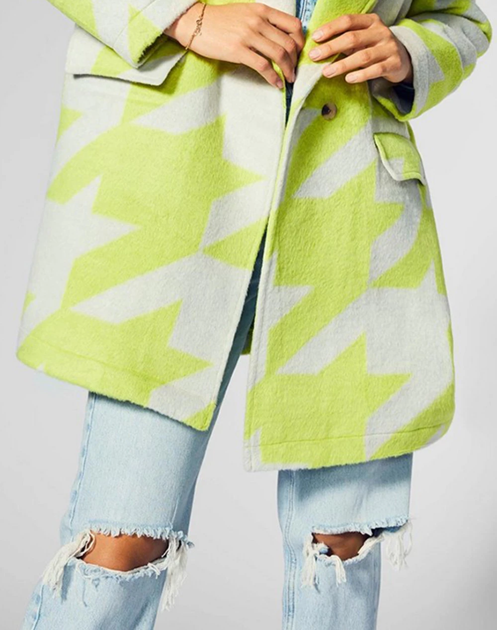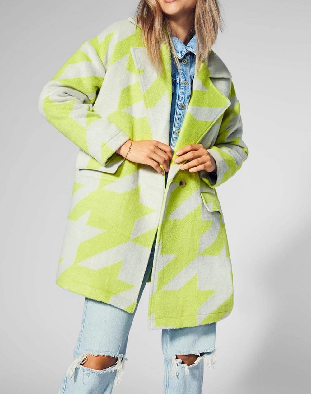 Γυναικείο ημίπαλτο με γιακά και σχέδια.Διαθέτει δύο τσέπες με καπάκια. ( Σύνθεση: 80% Πολυεστέρας, 15% Ακρυλικό, 3% βισκόζη, 2% Μαλλί )