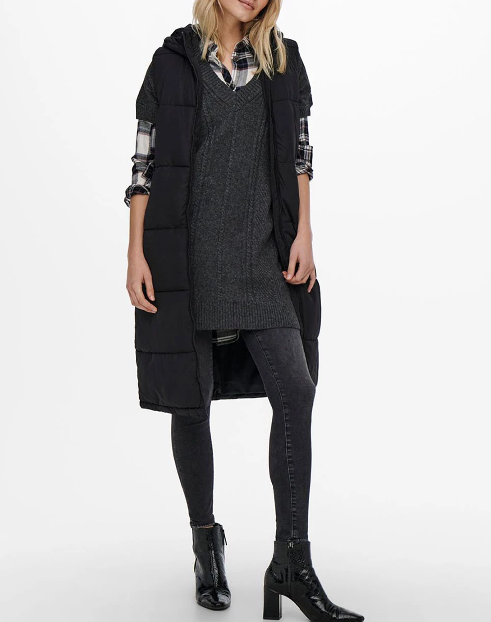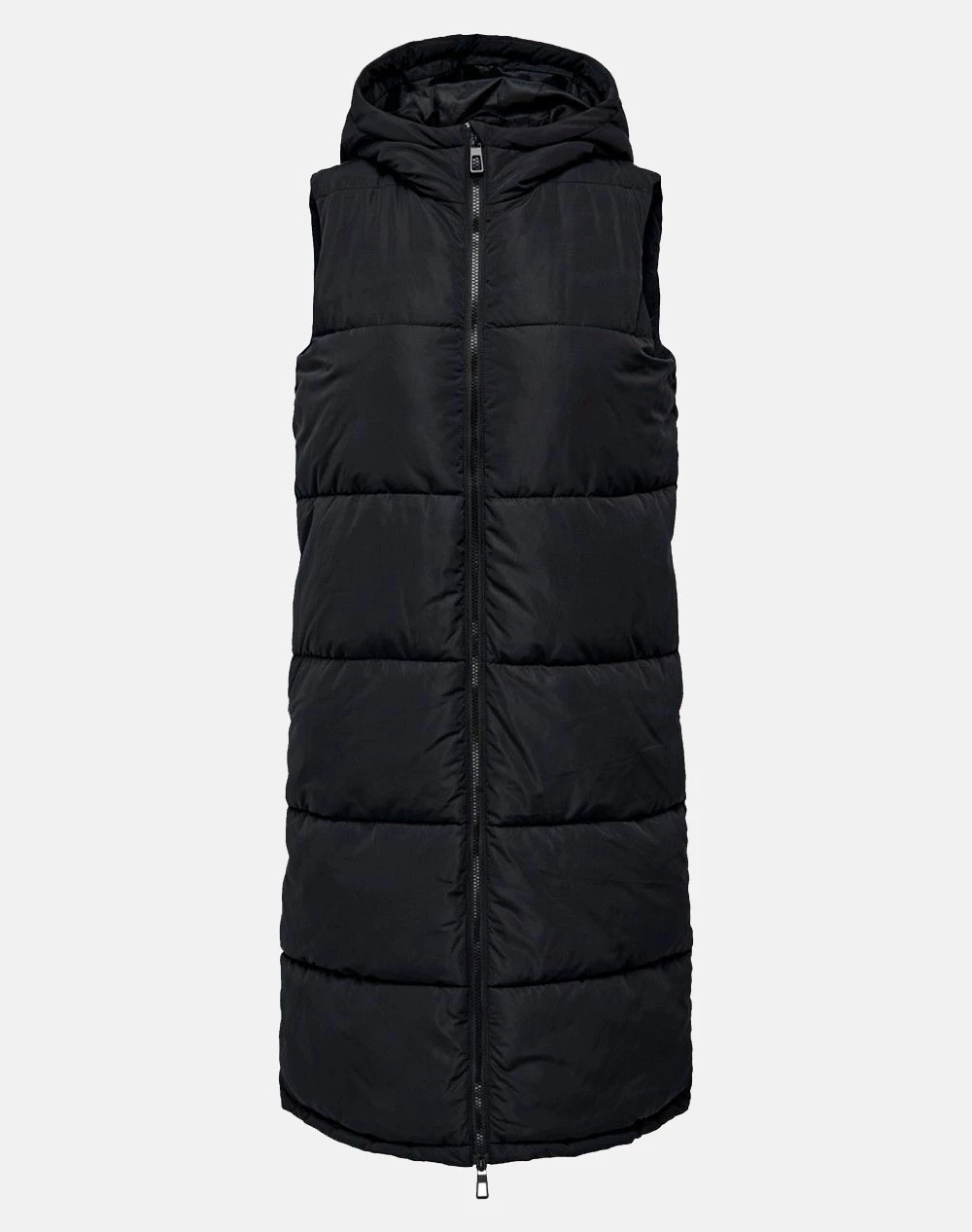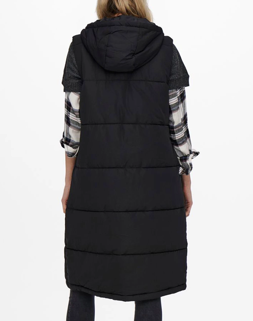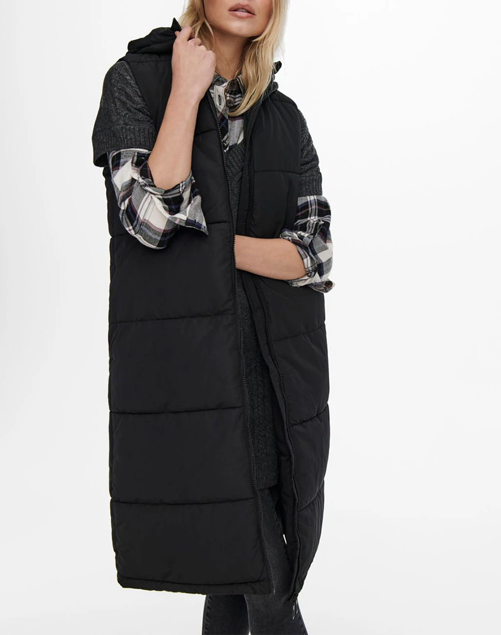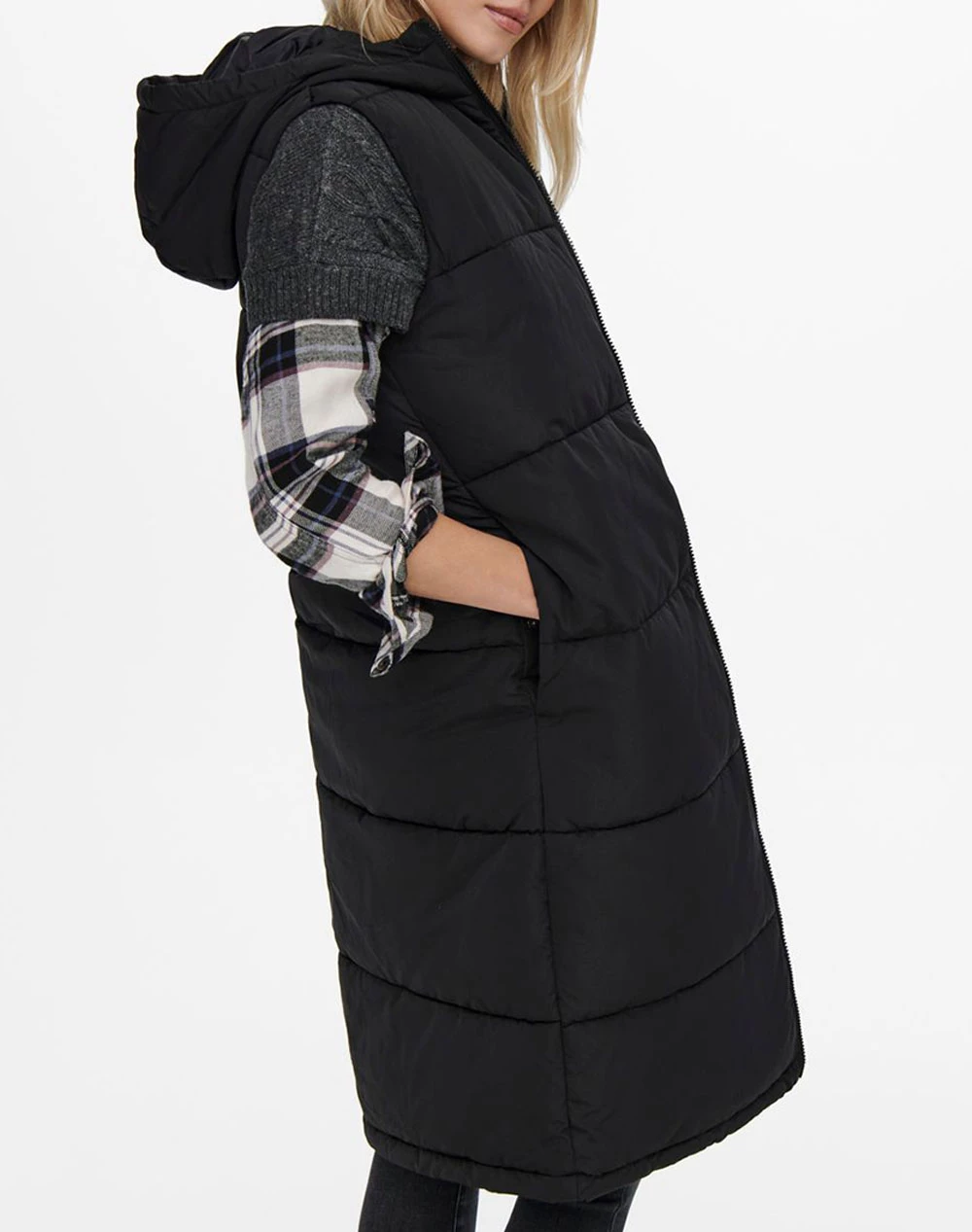 Μπουφάν αμάνικο μονόχρωμο με κουκούλα. Διαθέτει τσέπες στο πλάϊ και κλείνει με φερμουάρ μπροστά. Σε κανονική εφαρμογή. (Σύνθεση: 100% Πολυεστέρας)