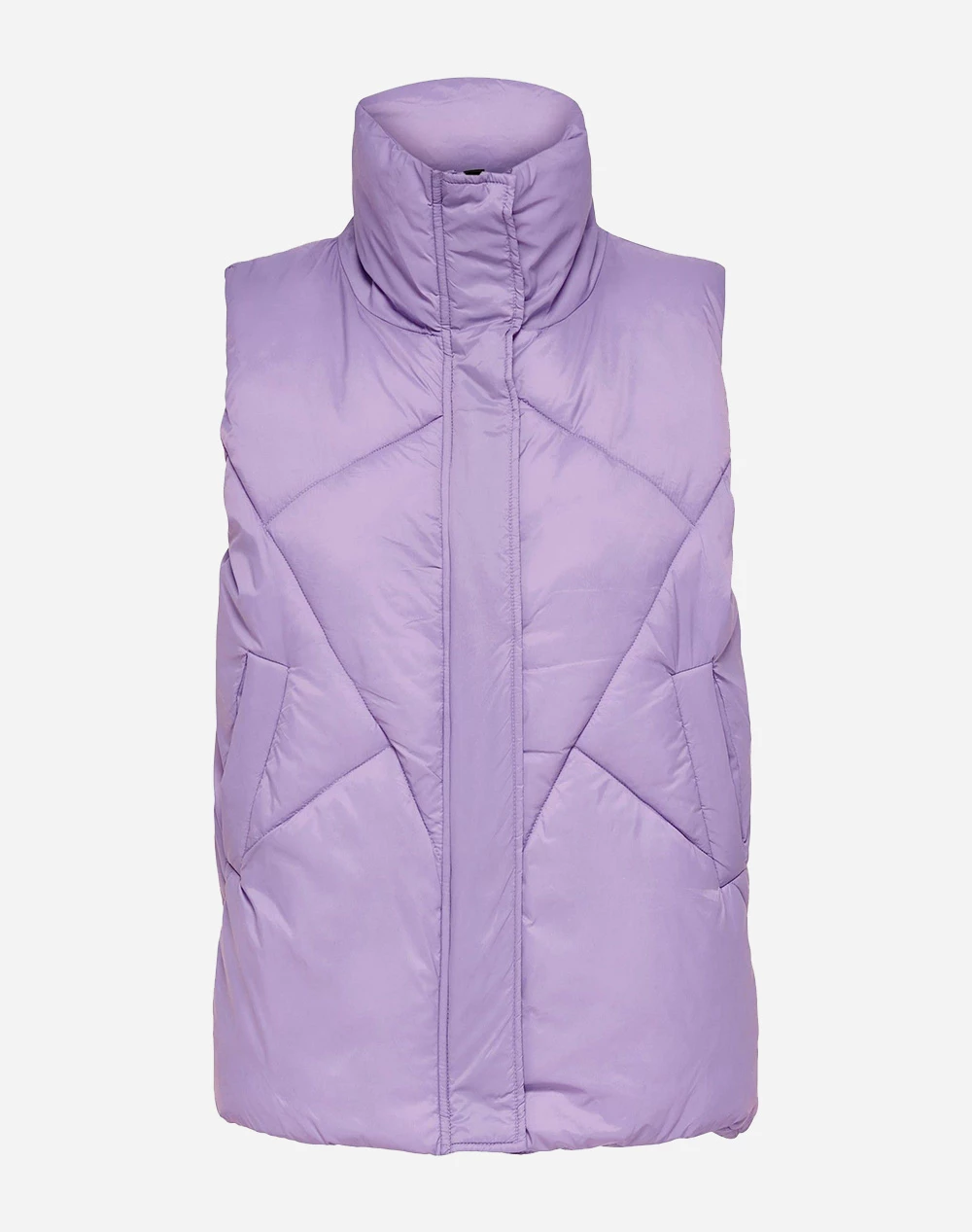 Μπουφάν αμάνικο/γιλέκο μονόχρωμο σε στυλ Puffer και σε κανονική εφαρμογή. Με όρθιο γιακά, τσέπες στο πλάϊ και κλείνει με φερμουάρ μπροστά. (Σύνθεση: 100% Ναϋλον)