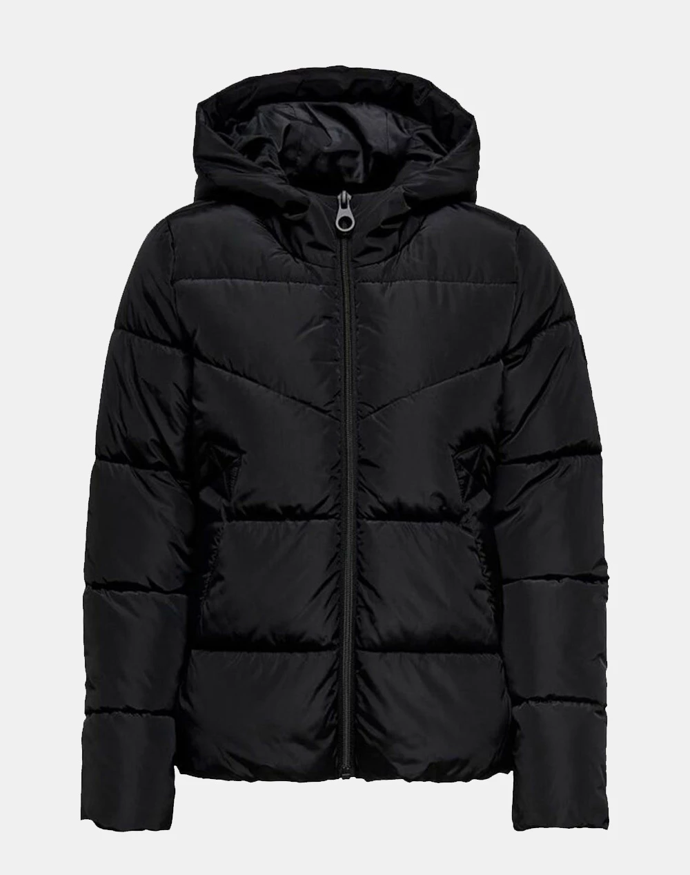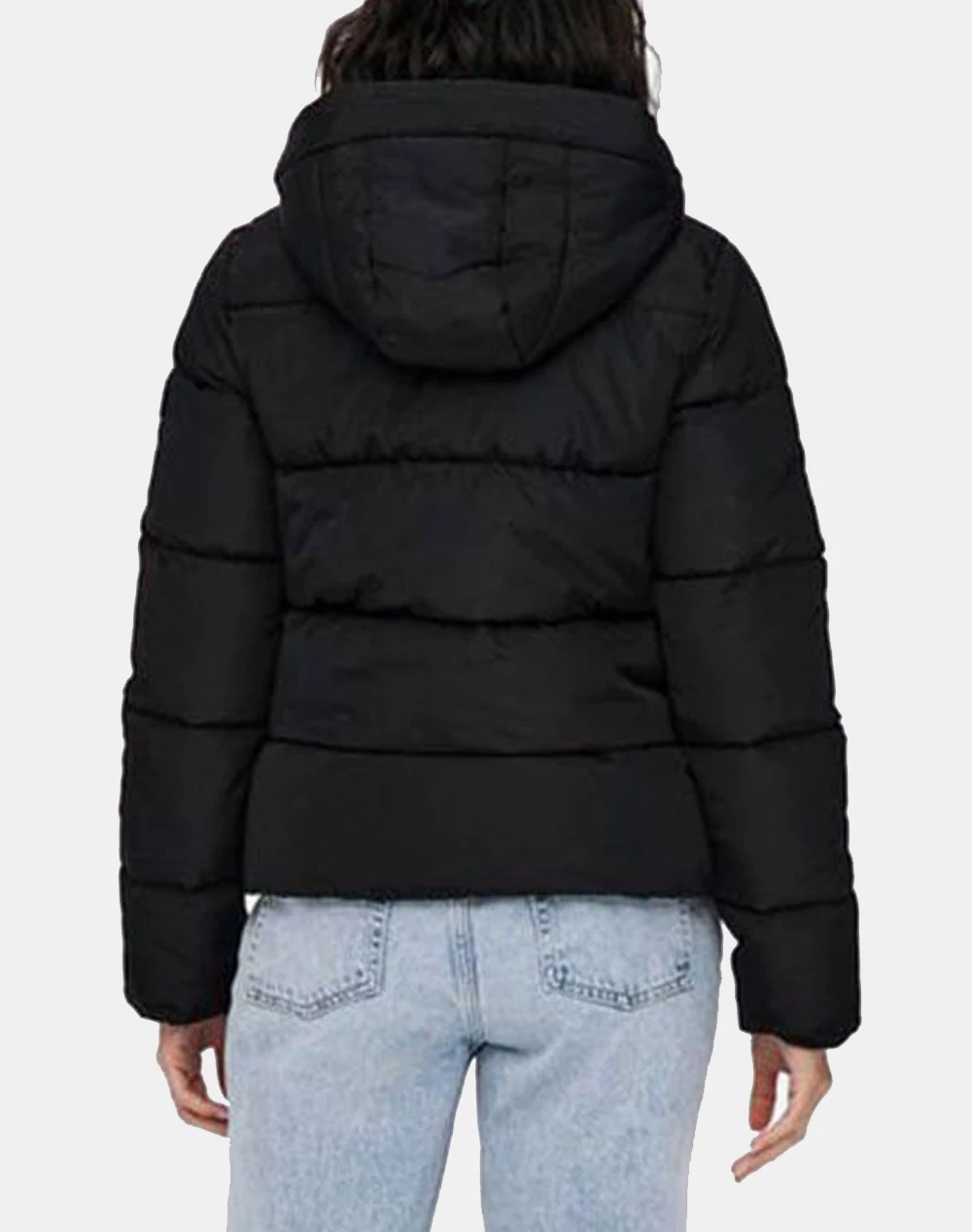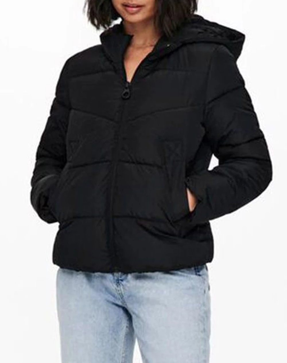Γυναικείο μπουφάν τύπου puffer σε κανονική γραμμή, με κουκούλα και τσέπες στο πλάι. ( Σύνθεση: 100% Πολυεστέρας )