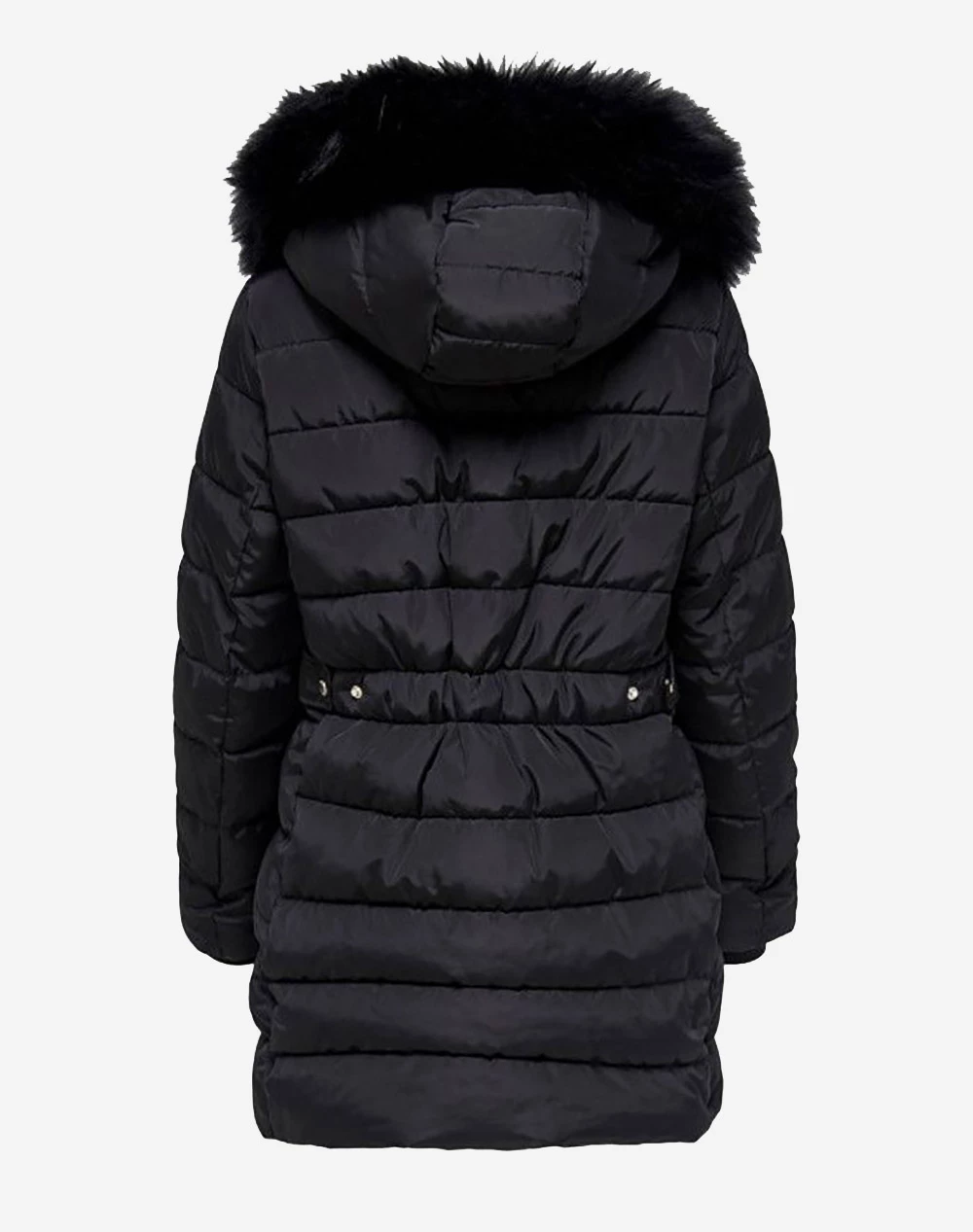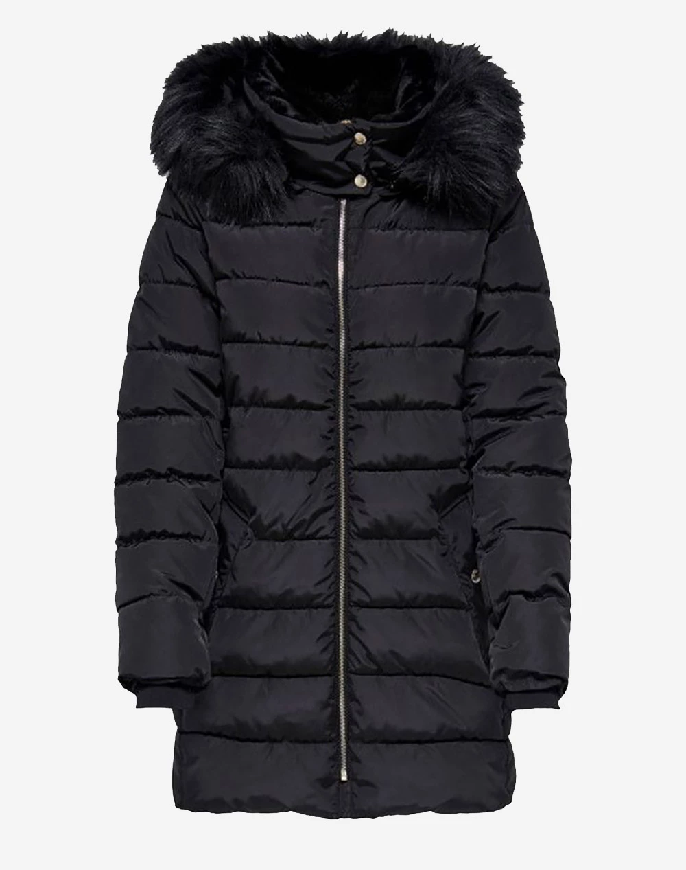 Γυναικείο μακρύ μπουφάν τύπου puffer, με γούνινη κουκούλα, τσέπες στο πλάι και κλείσιμο με φερμουάρ. ( Σύνθεση: 100% Πολυεστέρας )