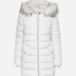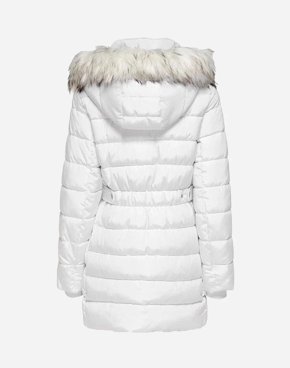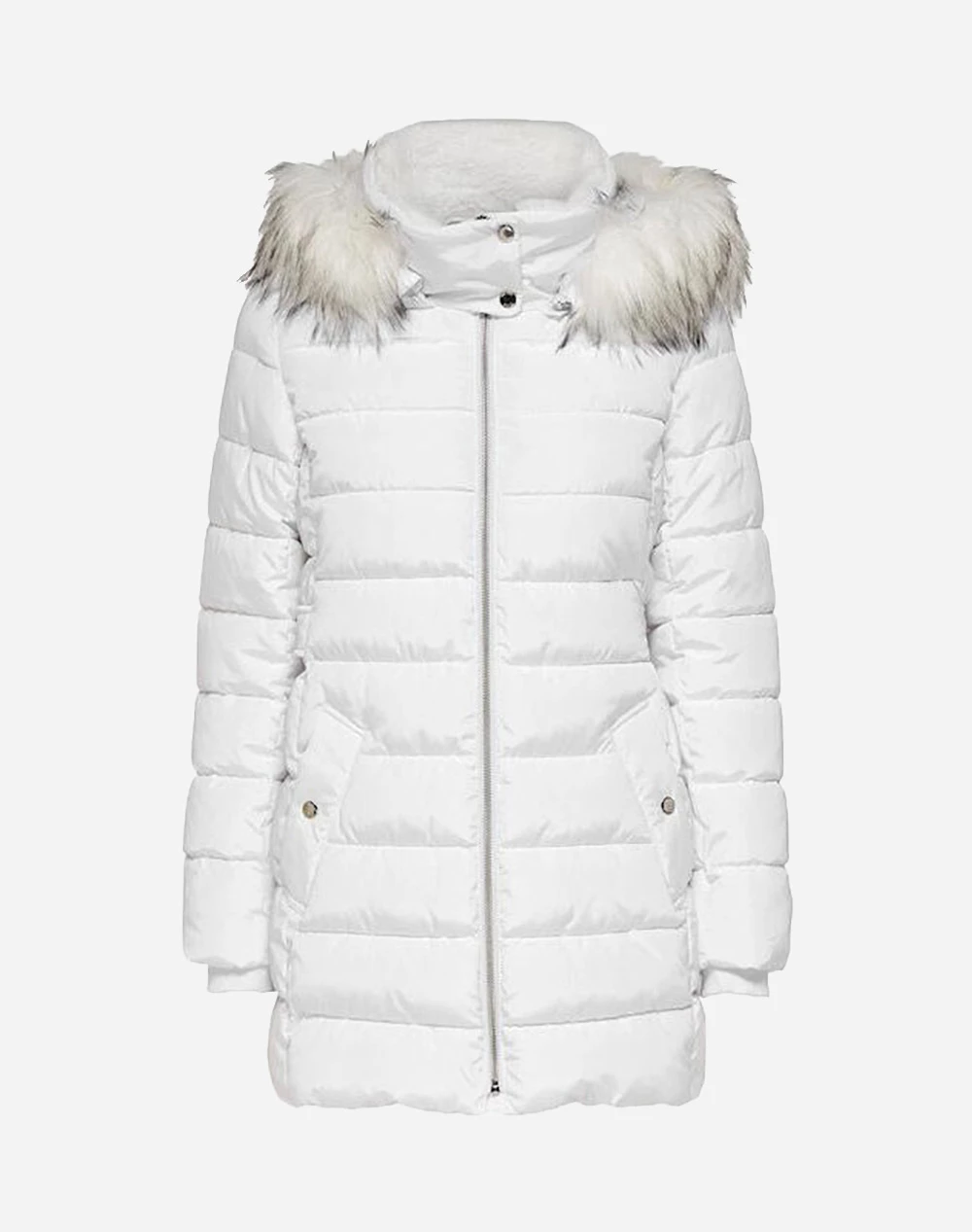 Γυναικείο μακρύ μπουφάν τύπου puffer, με γούνινη κουκούλα, τσέπες στο πλάι και κλείσιμο με φερμουάρ. ( Σύνθεση: 100% Πολυεστέρας )