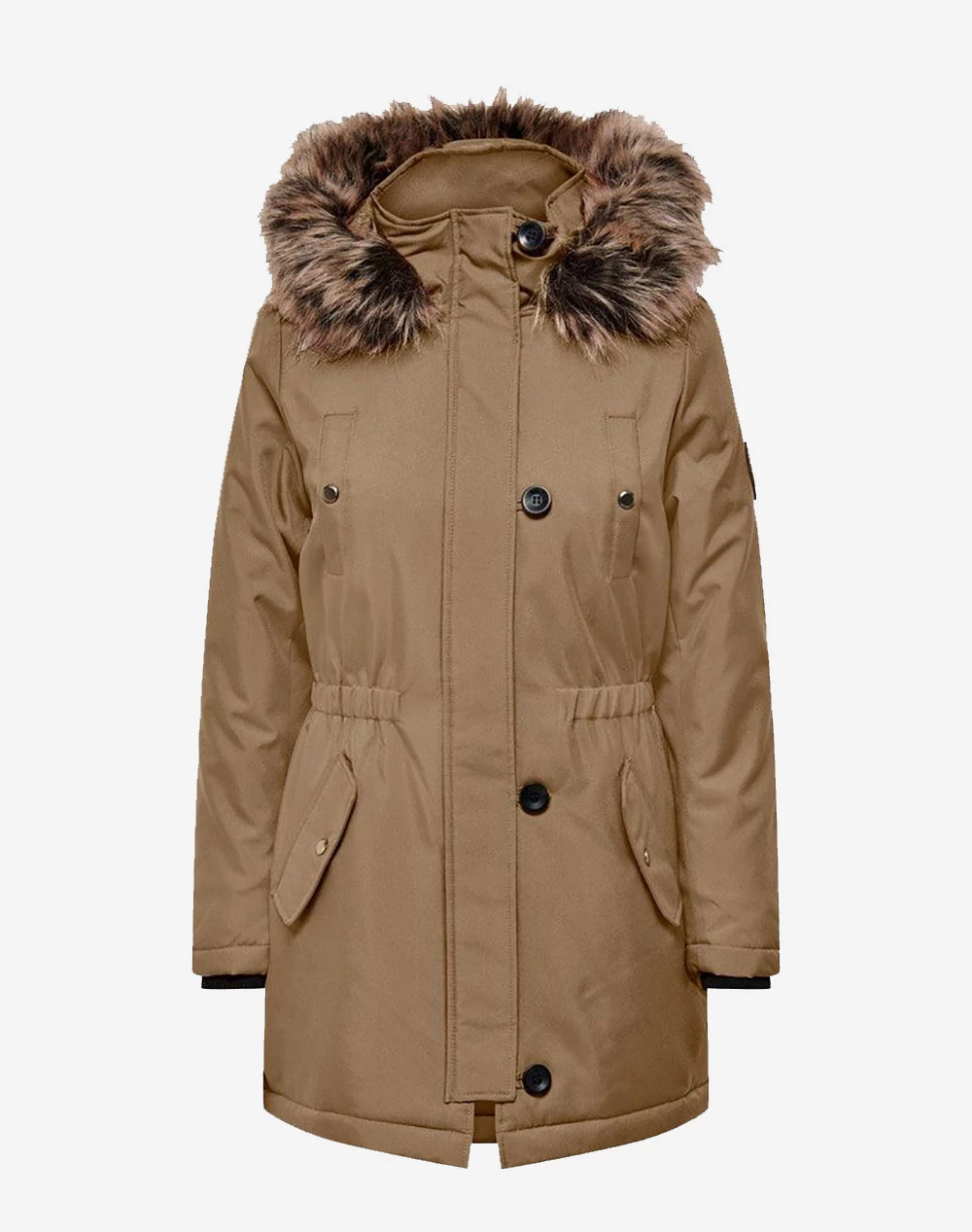 Γυναικείο μπουφάν τύπου parka, σε κανονική γραμμή, με αποσπώμενη κουκούλα με γούνα,ελαστική εσωτερική μέση, τσέπες στο πλάι και κλείσιμο με φερμουάρ. ( Σύνθεση: Συνθετικό )
