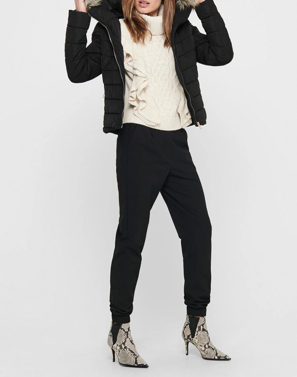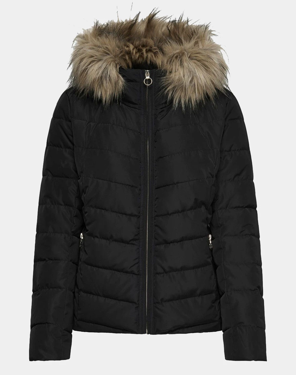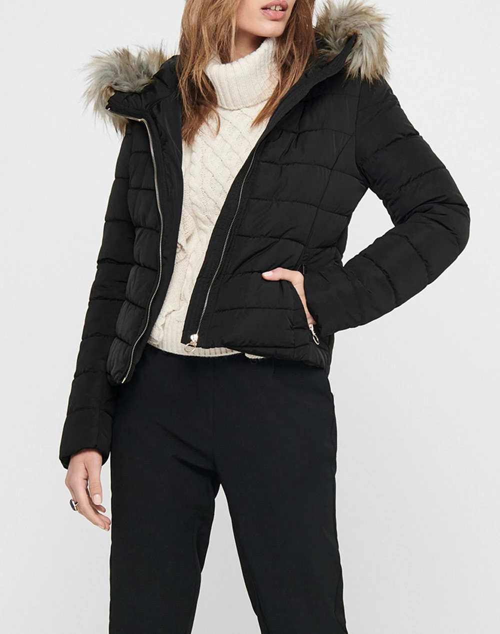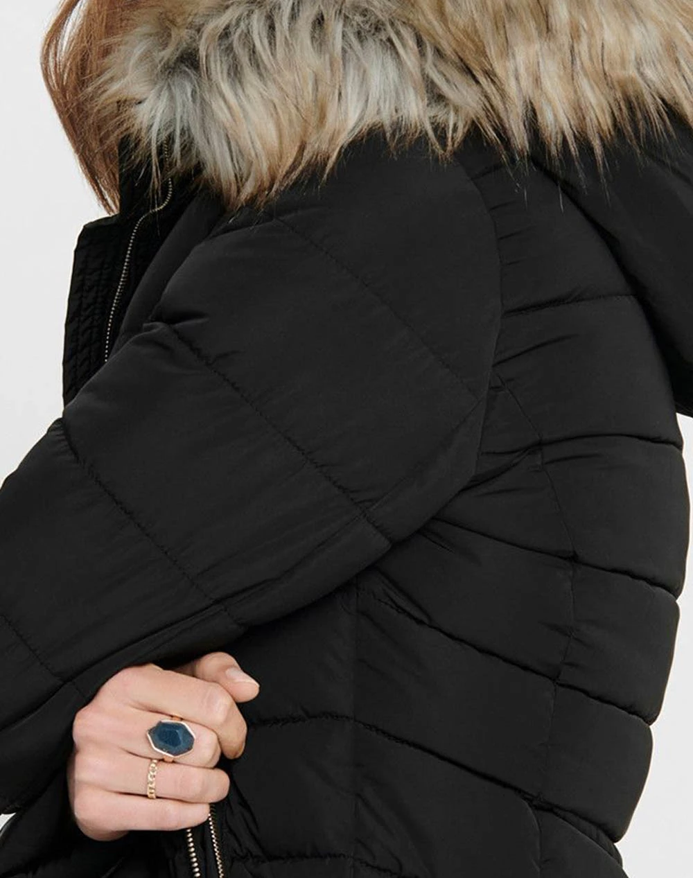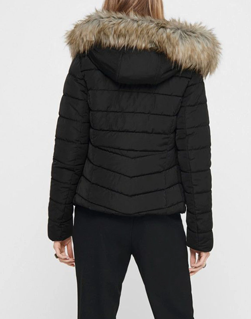 Γυναικείο μπουφάν τύπου puffer σε κανονική γραμμή, με κουκούλα με γούνα, τσέπες στο πλάι και κλείσιμο με φερμουάρ. ( Σύνθεση: Συνθετικό )
