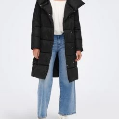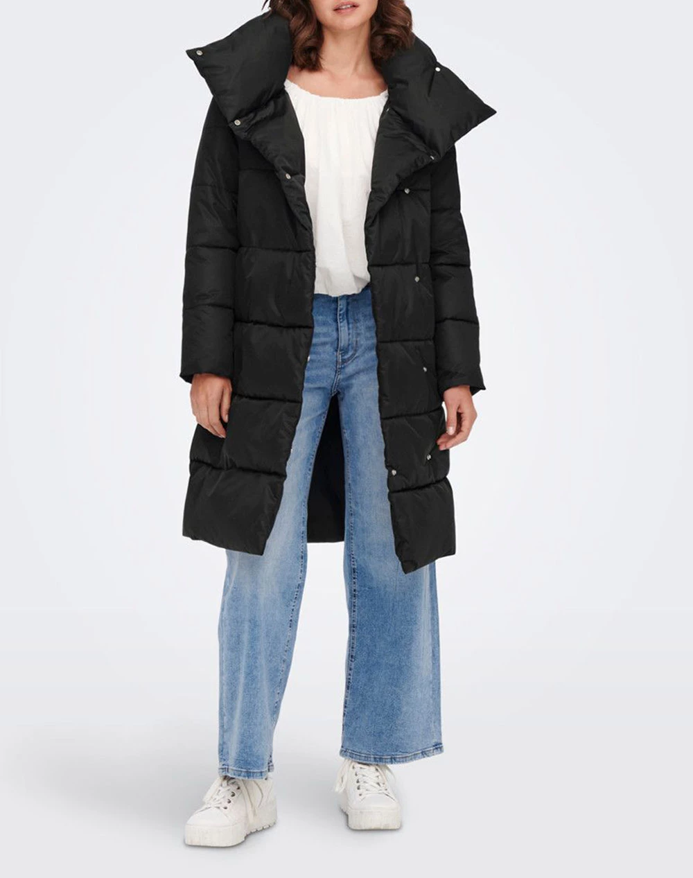 Γυναικείο μακρύ μπουφάν τύπου puffer σε κανονική γραμμή, με τσέπες στο πλάι, ψηλό λαιμό και κλείσιμο με κουμπιά. ( Σύνθεση: 100% Πολυεστέρας )