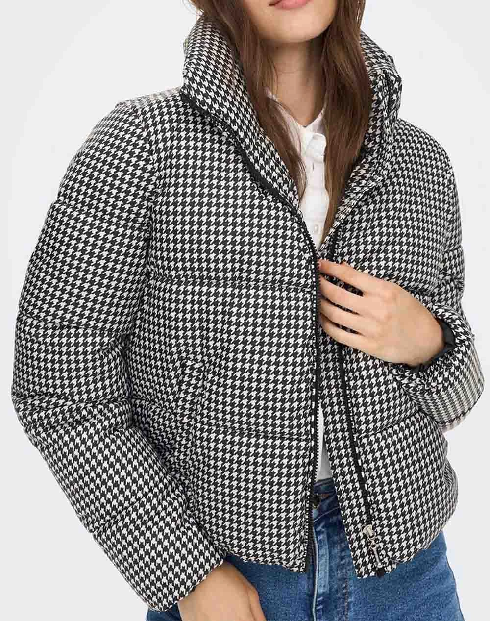 Μπουφάν εμπριμέ τύπου Puffer με μακρύ μανίκι και σε στυλ Cropped. Διαθέτει τσέπες στο πλάϊ και κλείνει με φερμουάρ μπροστά. (Σύνθεση: 100% Πολυεστέρας)