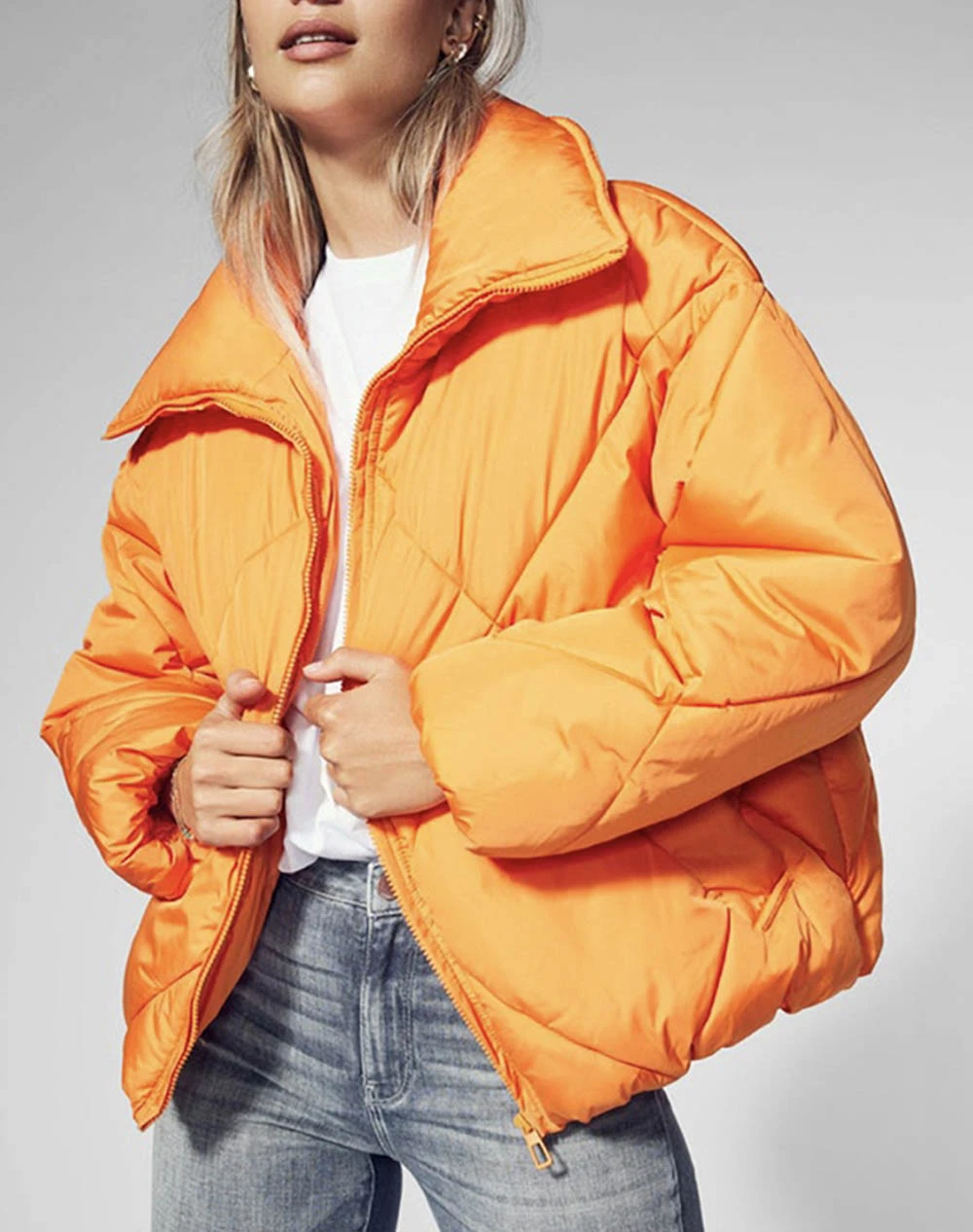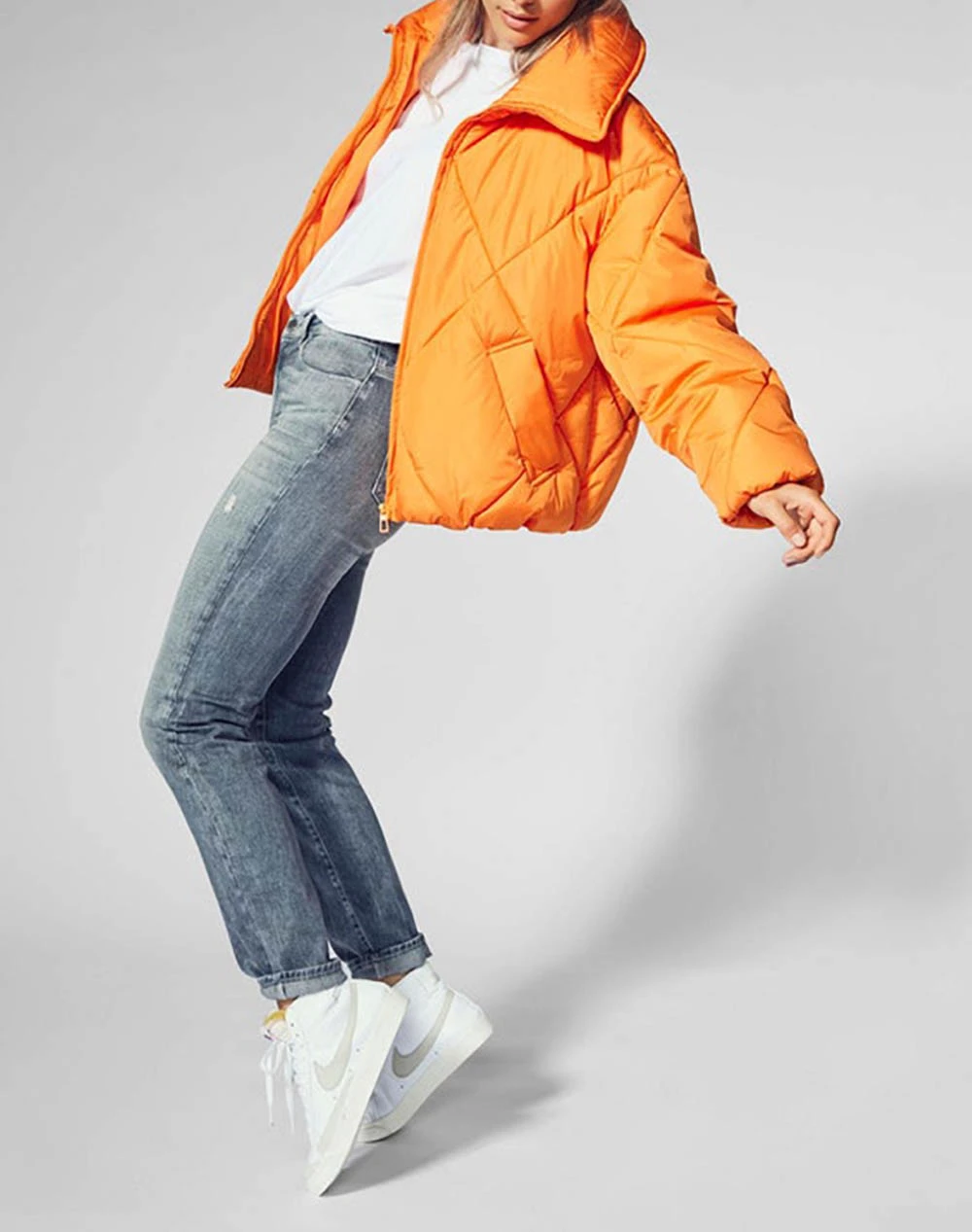 Γυναικείο μπουφάν τύπου bomber με καπιτονέ όψη, μακριά μανίκια, πλαινές τσέπες και κλείσιμο με φερμουάρ. ( Σύνθεση: 100% Πολυαστέρας )