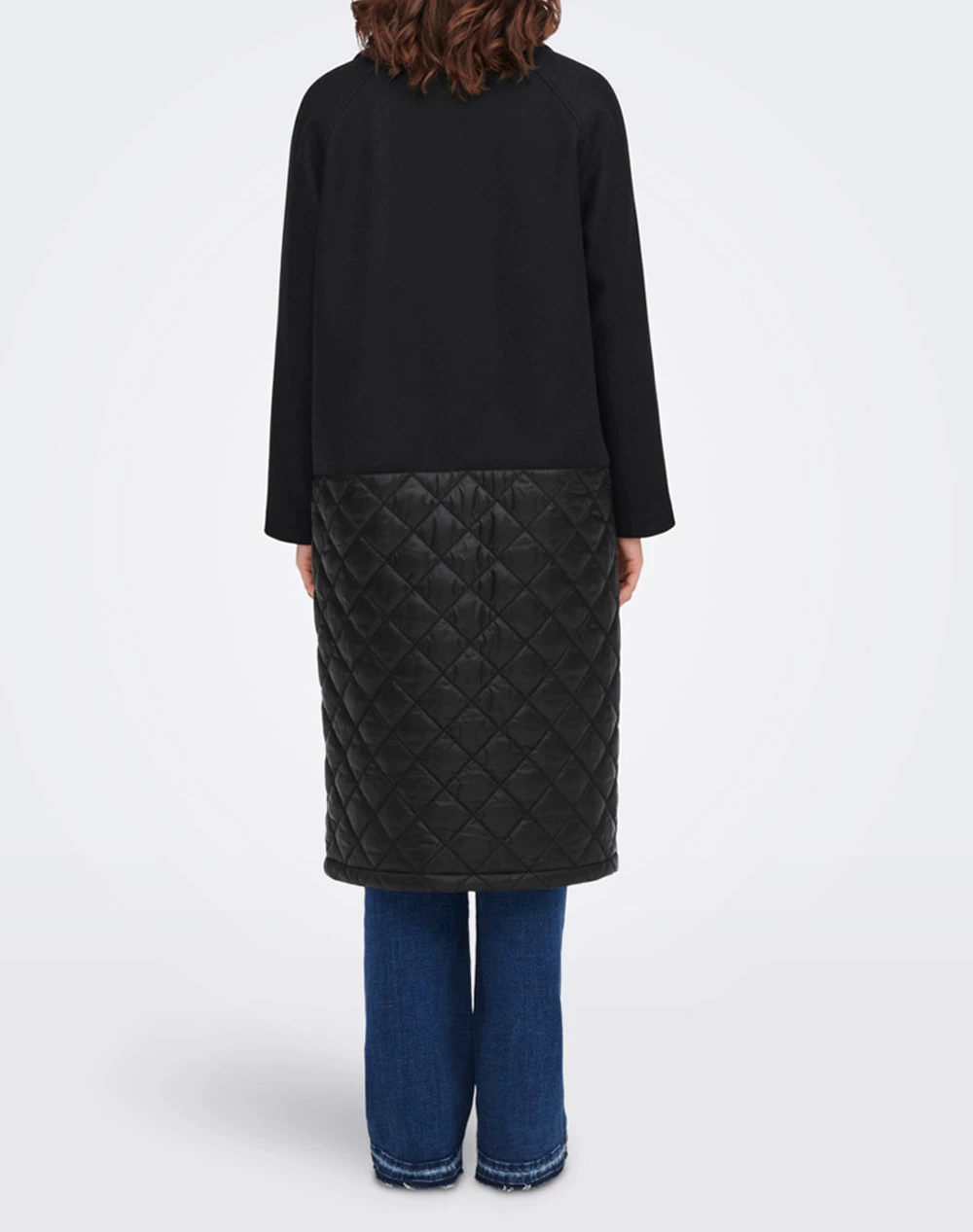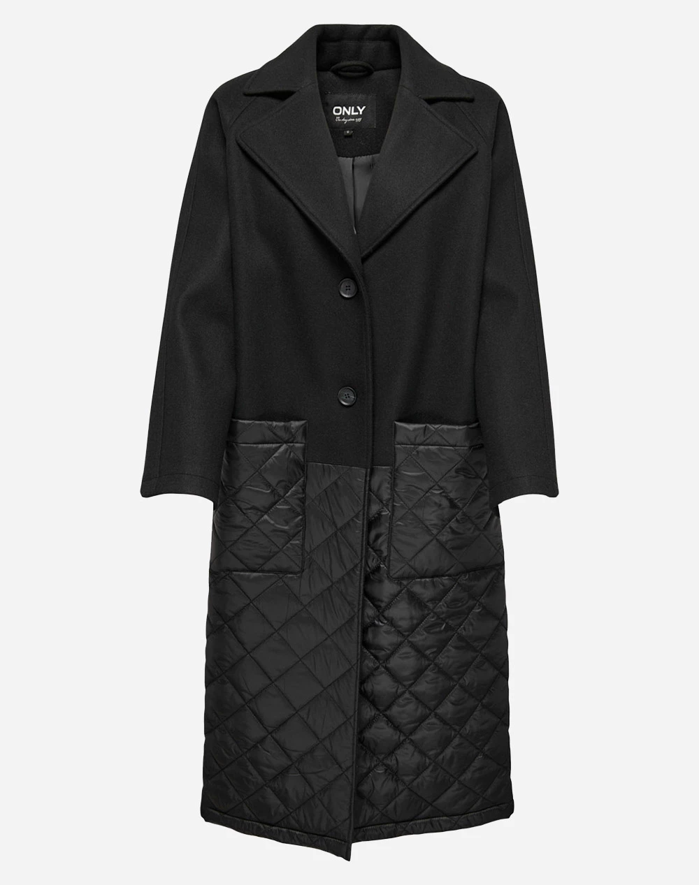 Παλτό μονόχρωμο μακρύ, με καπιτονέ λεπτομέρειες στις τσέπες και στο τελείωμα. Κλείνει με κουμπιά μπροστά. (Σύνθεση: 50% Ανακυκλωμένος πολυεστέρας, 50% Πολυεστέρας)