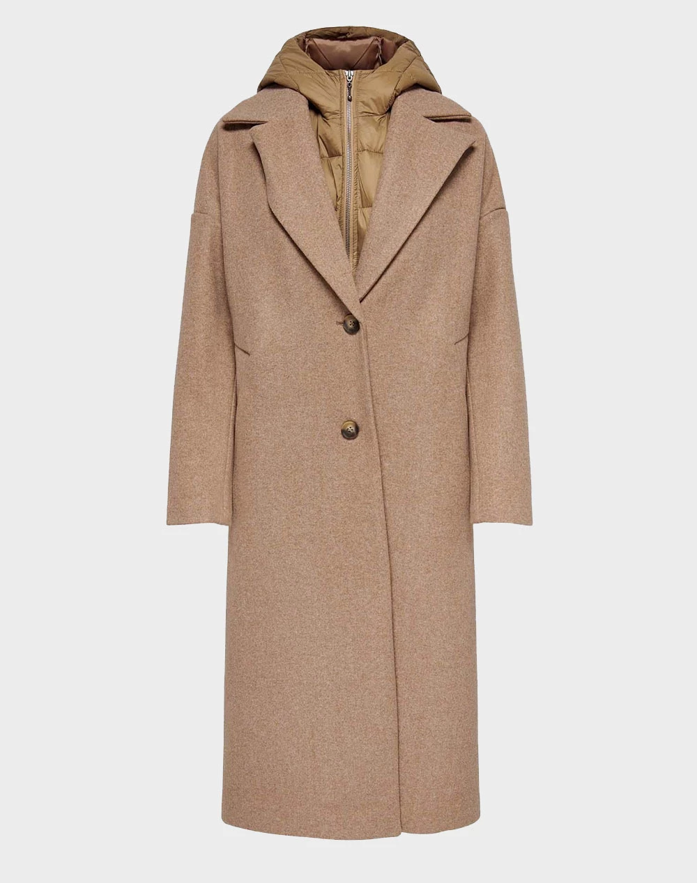 Παλτό μονόχρωμο με αποσπώμενο γιλέκο με κουκούλα και κλείσιμο με κουμπιά μπροστά. (Σύνθεση: 50% Ανακυκλωμένος πολυεστέρας, 50% Πολυεστέρας)