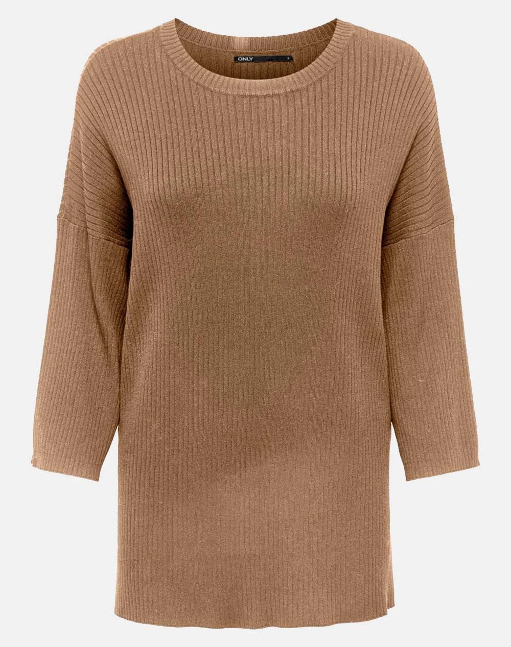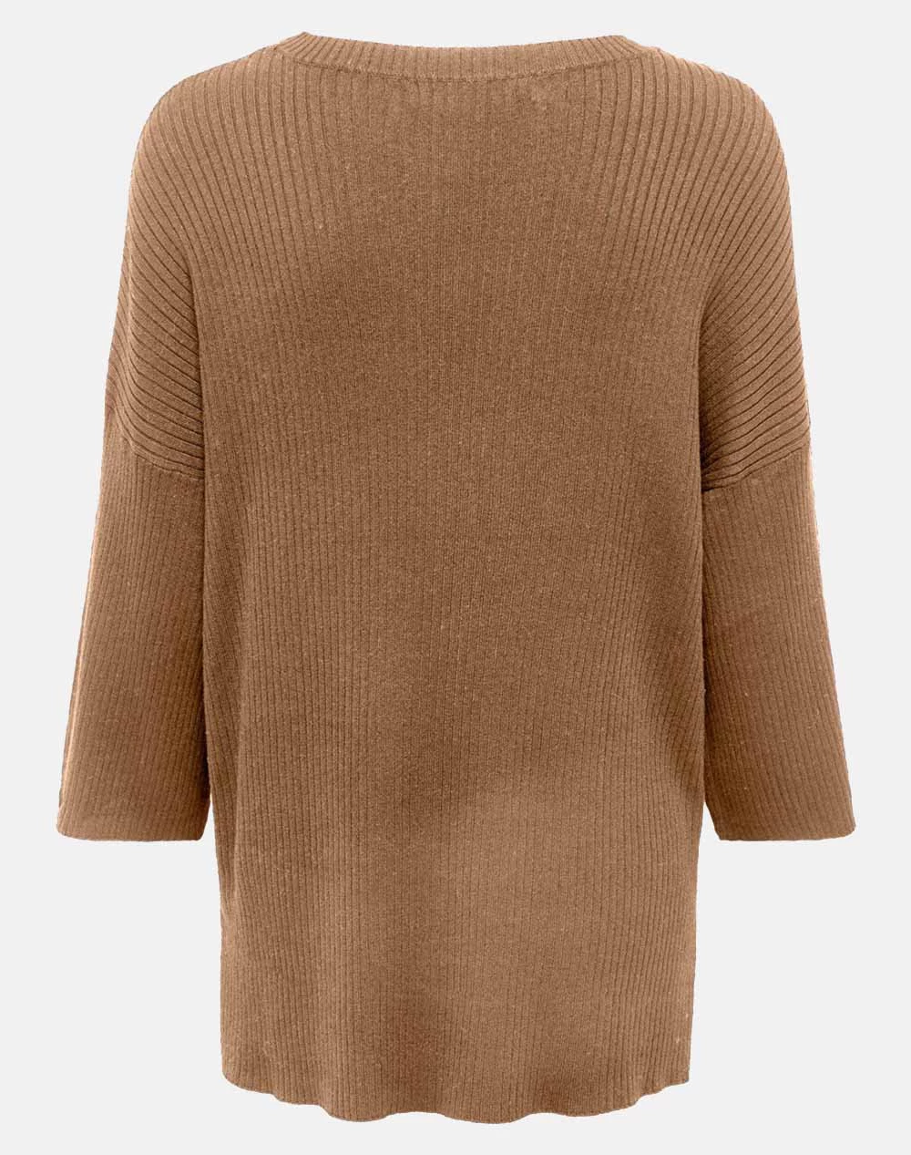 Γυναικεία μπλούζα πλεκτή σε κανονική γραμμή, με στρογγυλή λαιμόκοψη και μανίκια 3/4. ( Σύνθεση: Βαμβακερό μείγμα )