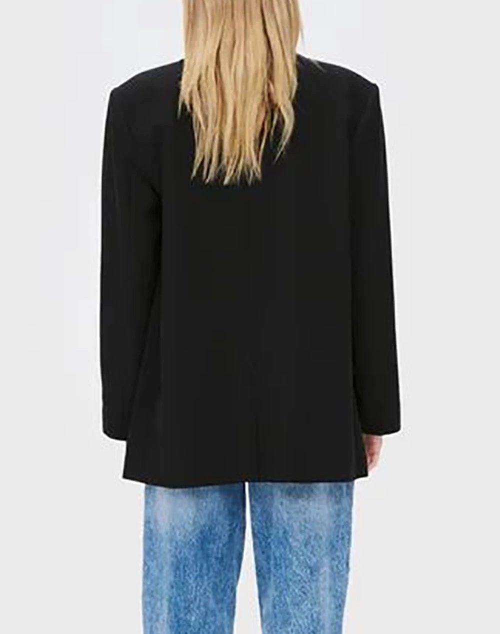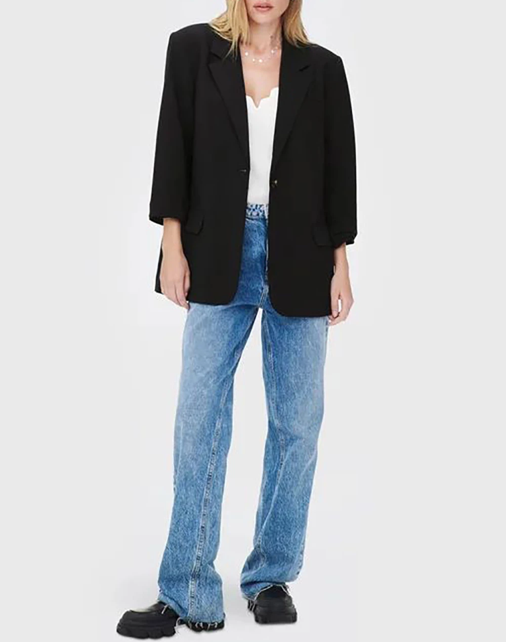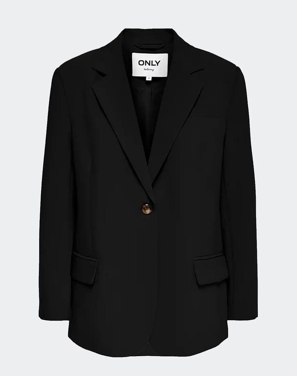 Σακάκι μονόχρωμο σε Oversized fit, με γιακά τύπου Blazer και κλείνει με κουμπί στη μπροστινή όψη. (Σύνθεση: 76% Πολυεστέρας, 19% Βισκόζη, 5% Ελαστάνη)