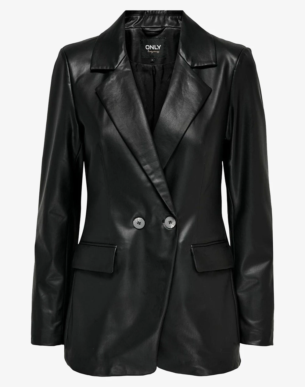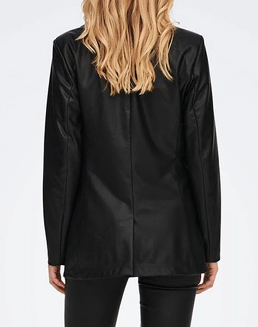 Σακάκι μονόχρωμο δερματίνη, τύπου Blazer, με κουμπια και κανονική εφαρμογή. (Σύνθεση: 100% Πολυστέρας)