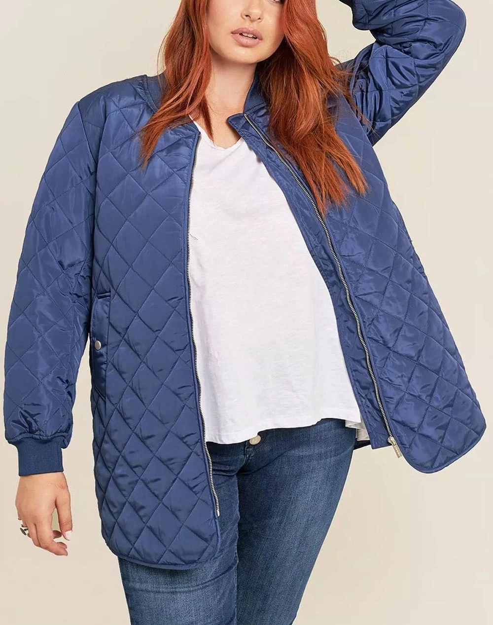 Γυναικείο μπουφάν σε κανονική γραμμή, με ελαφριά επένδυση, μακριά μανίκια με ελαστική μανσέτα και πλαινές τσέπες . ( Σύνθεση: 100% Πολυεστέρας )