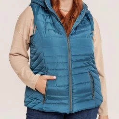 Γυναικείο καπιτονέ αμάνικο μπλουφάν με αποσπώμενη κουκούλα. Τσέπες με φερμουάρ στο πλάι, σε Α γραμμή και κλείσιμο με φερμουάρ κατά μήκος. ( Σύνθεση: 100% Πολυαστέρας )