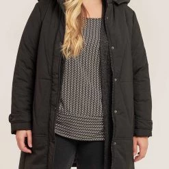 Μπουφάν μονόχρωμο, με απόσπώμενη κουκούλα και ψηλό λαιμό. Διαθέτει μακριά μανίκια με μανσέτε με κουμπώμα και κλείνει με φερμουάρ και κουμπιά. (Σύνθεση: 100% Πολυεστέρας)
