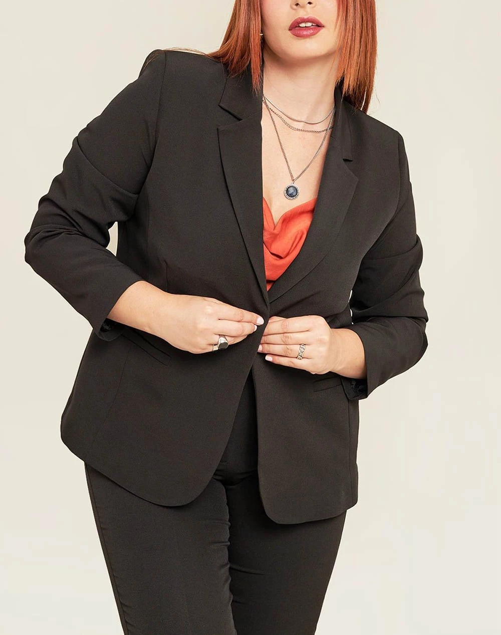 Γυναικείο σακάκι σε ίσια γραμμή από κρεπ ύφανση και μπροστινές τσέπες. Κλείσιμο με κουμπί μπροστά.(Σύνθεση:88% Πολυεστέρας, 12% Σπάντεξ)