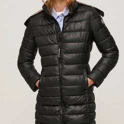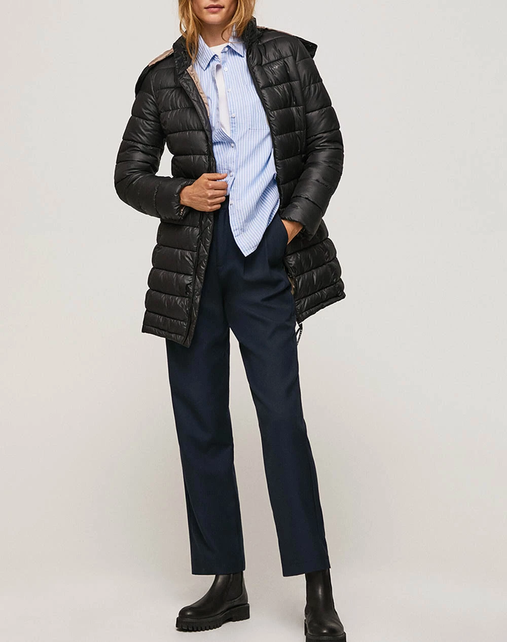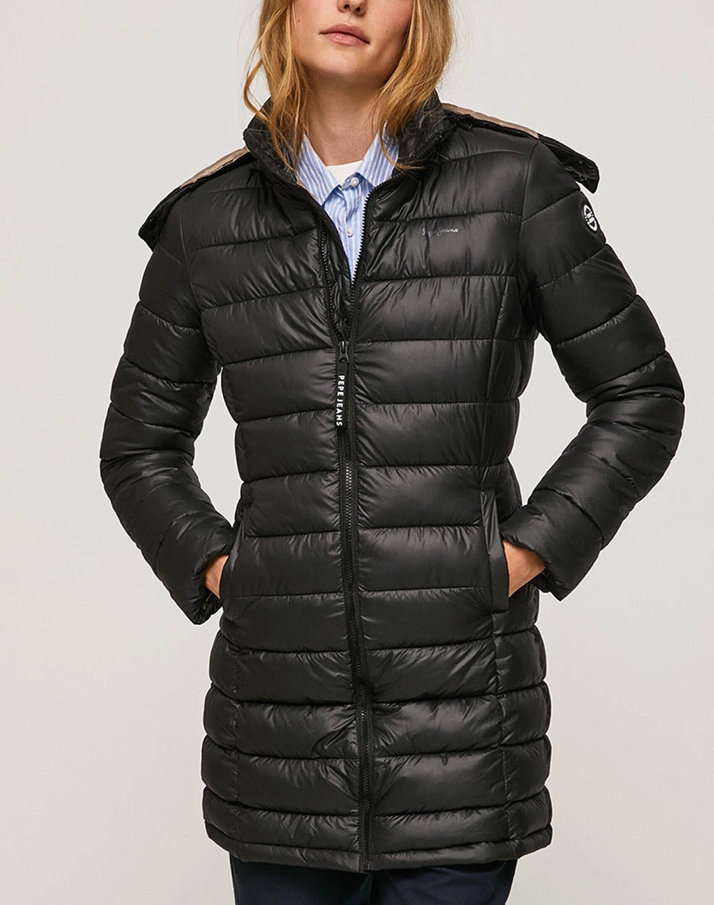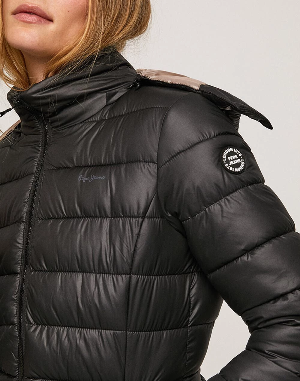 Γυναικείο μπουφάν καπιτονέ με κουκούλα και κλείσιμο με φερμουάρ. ( Σύνθεση: 100% Πολυεστέρας )