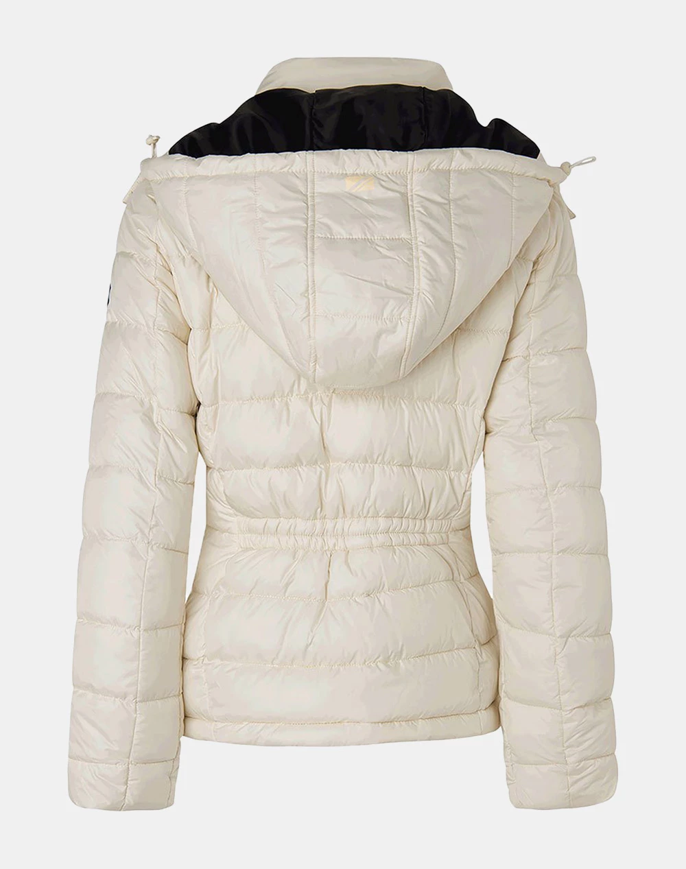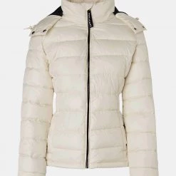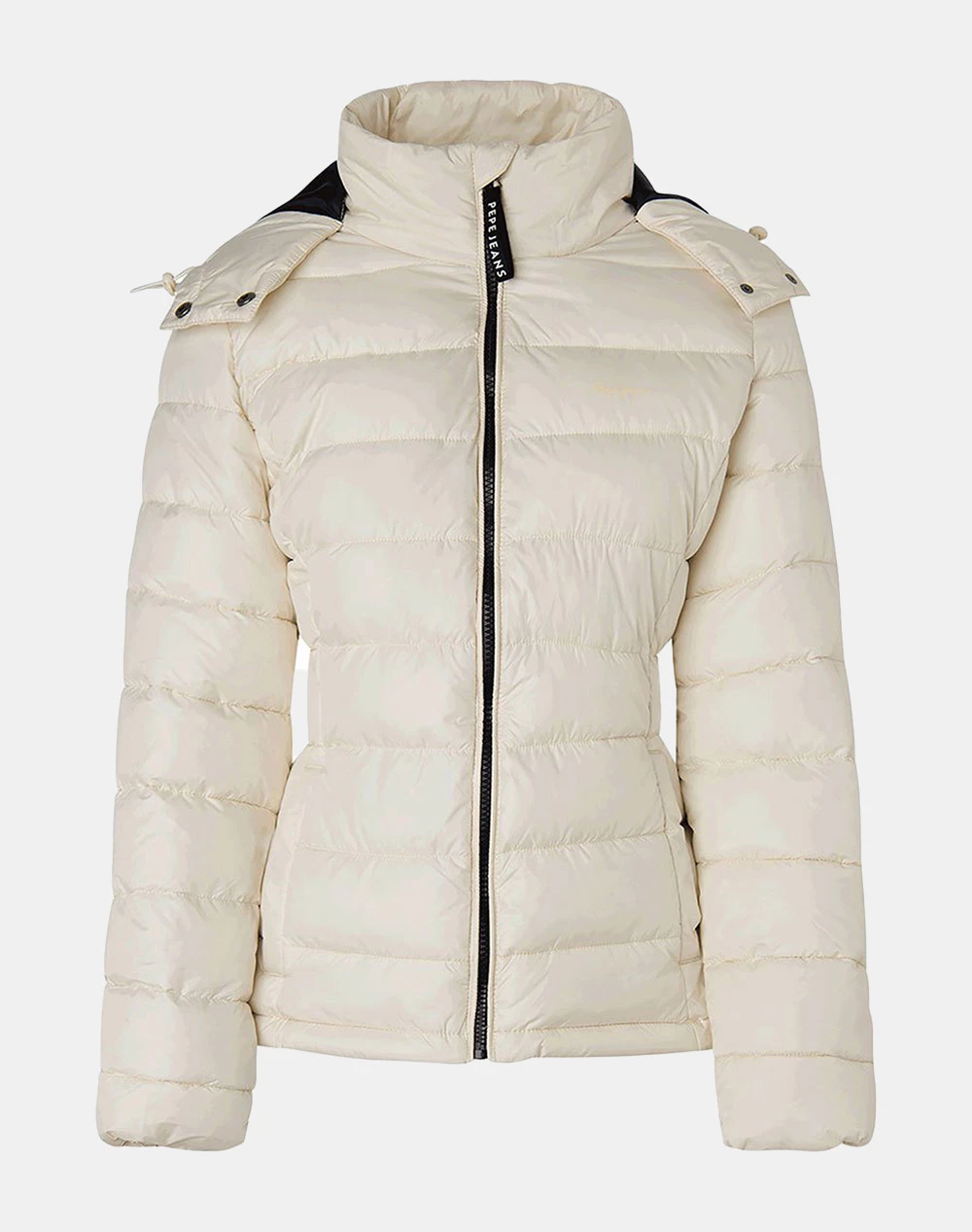 Γυναικείο μπουφάν τύπου puffer σε κανονική γραμμή, με κουκούλα, τσέπες στο πλάι και κλείσιμο με φερμουάρ. ( Σύνθεση: 100% Πολυεστέρας )