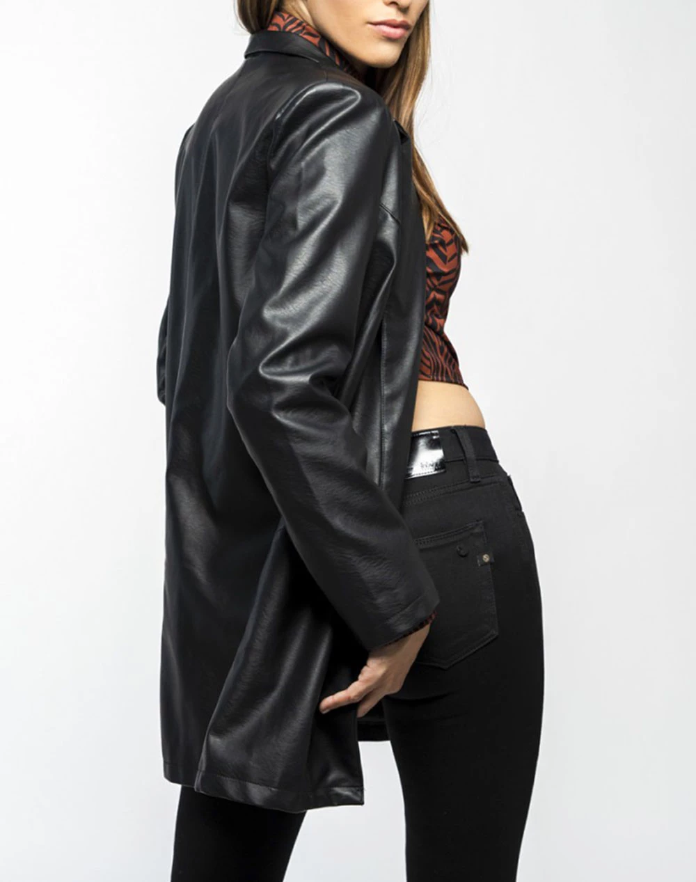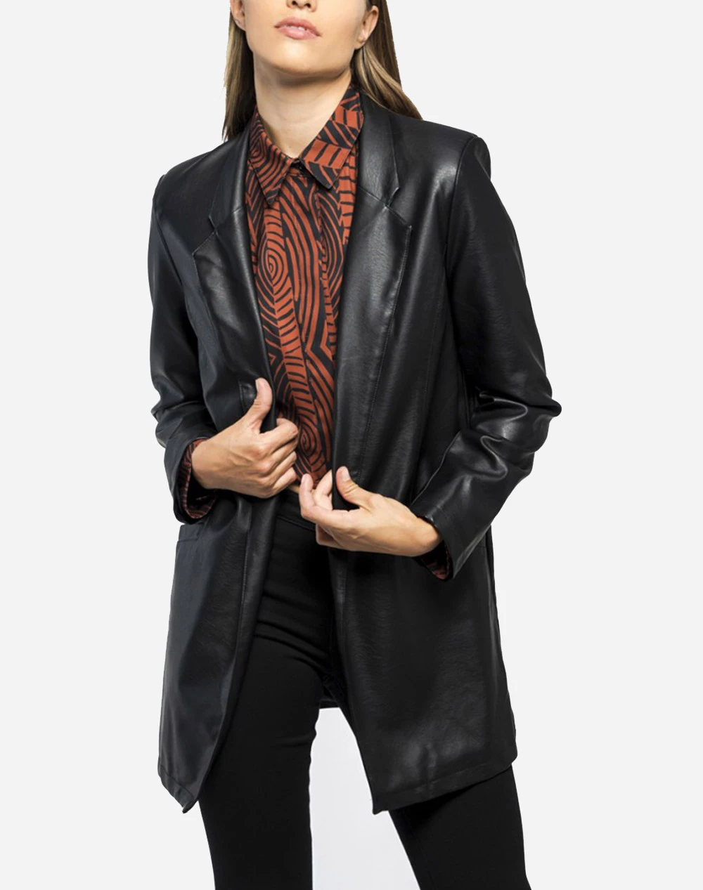 Σακάκι δερματίνης μονόχρωμο με μακρύ μανίκι και γιακά. (Σύνθεση: Οικολογικό δέρμα)