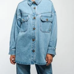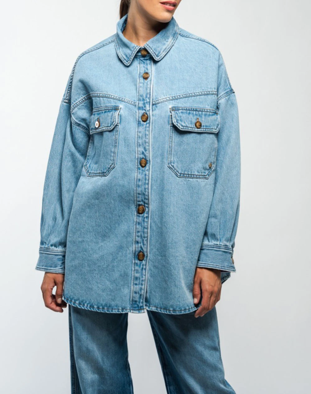 Τζάκετ τύπου Oversized με τσέπες στο στήθος και μακρύ μανίκι που καταλήγει σε μανσέτα με κουμπί. (Σύνθεση: 100% Βαμβάκι)
