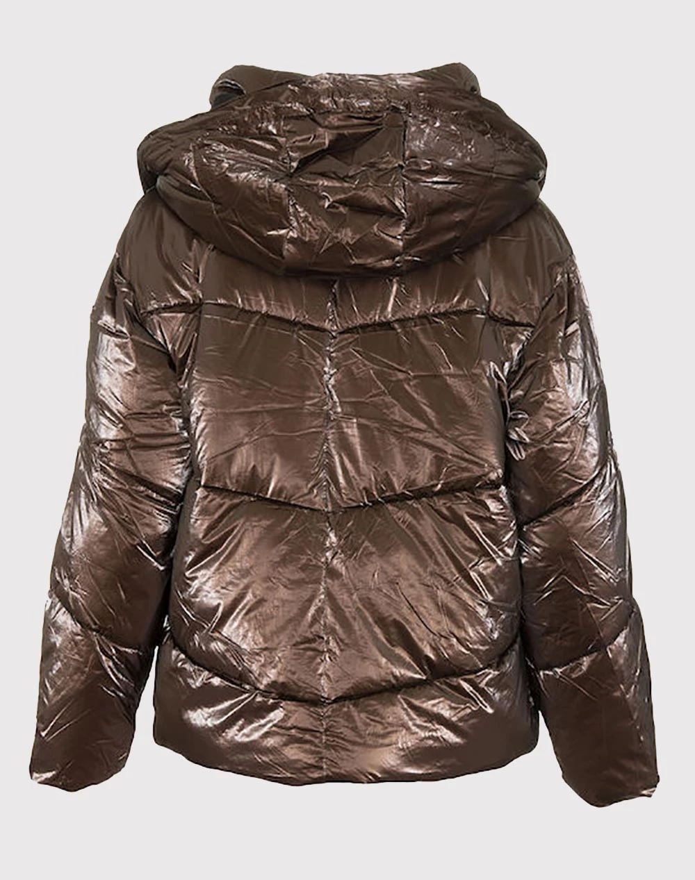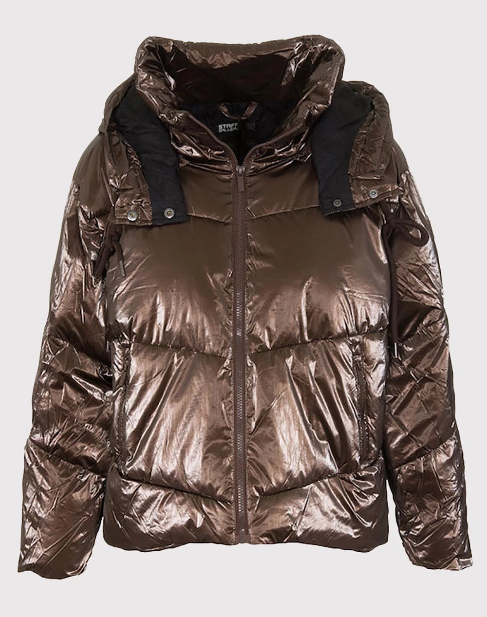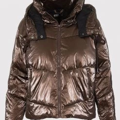 Μπουφάν μονόχρωμο με μεταλιζέ απόχρωση, τύπου Puffer, με αποσπώμενη κουκούλα και μπροστινές τσέπες, κλείνει με φερμουάρ μπροστά. (Σύνθεση: 100% Πολυεστέρας)