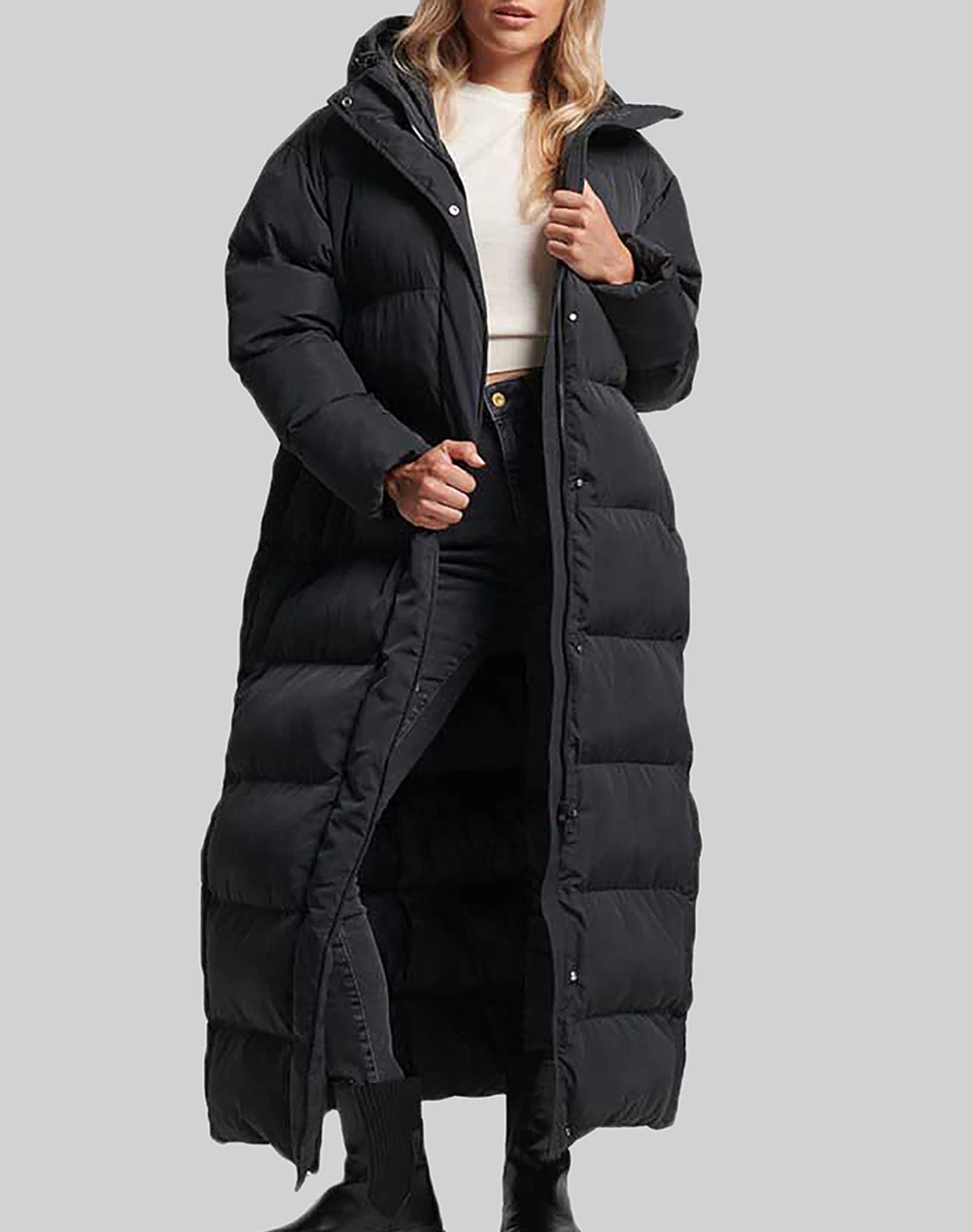 Γυναικείο μπουφάν σε κανονική γραμμή, με ρυθμιζόμενη κουκούλα, τσέπες στο πλάι, άνοιγμα στο τελείωμα στα πόδια. ( Σύνθεση: 100% Πολυεστέρας )