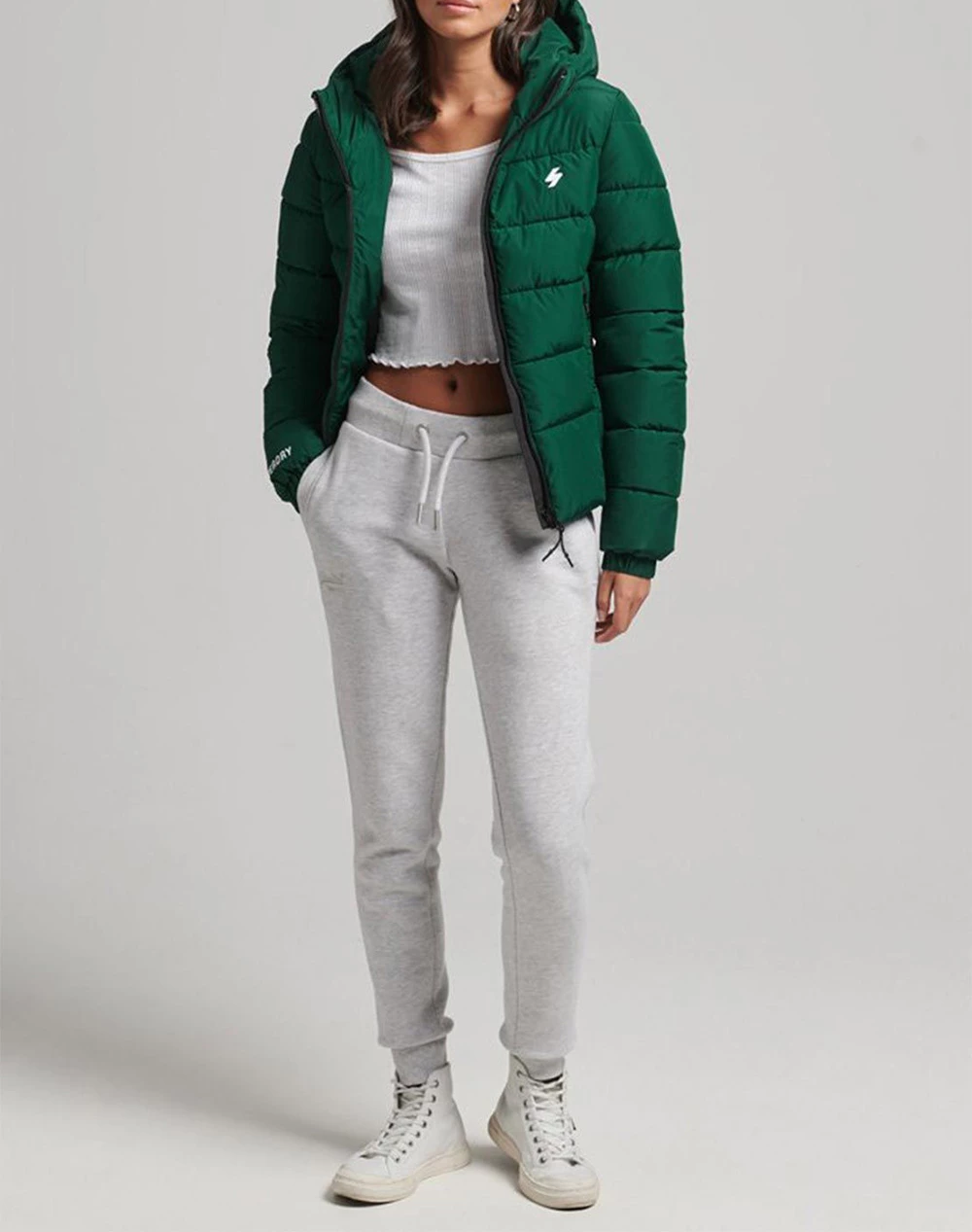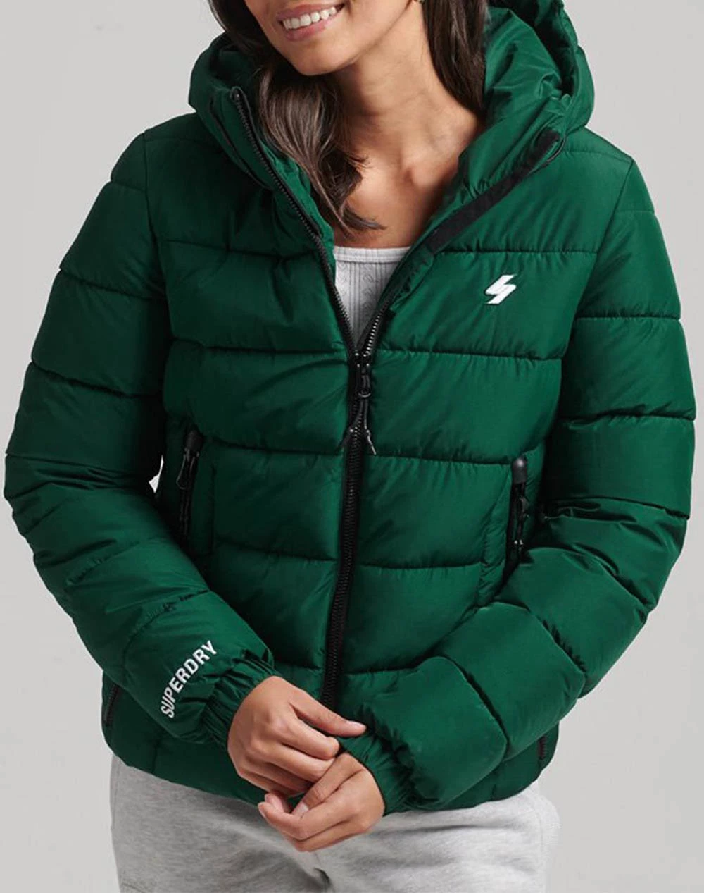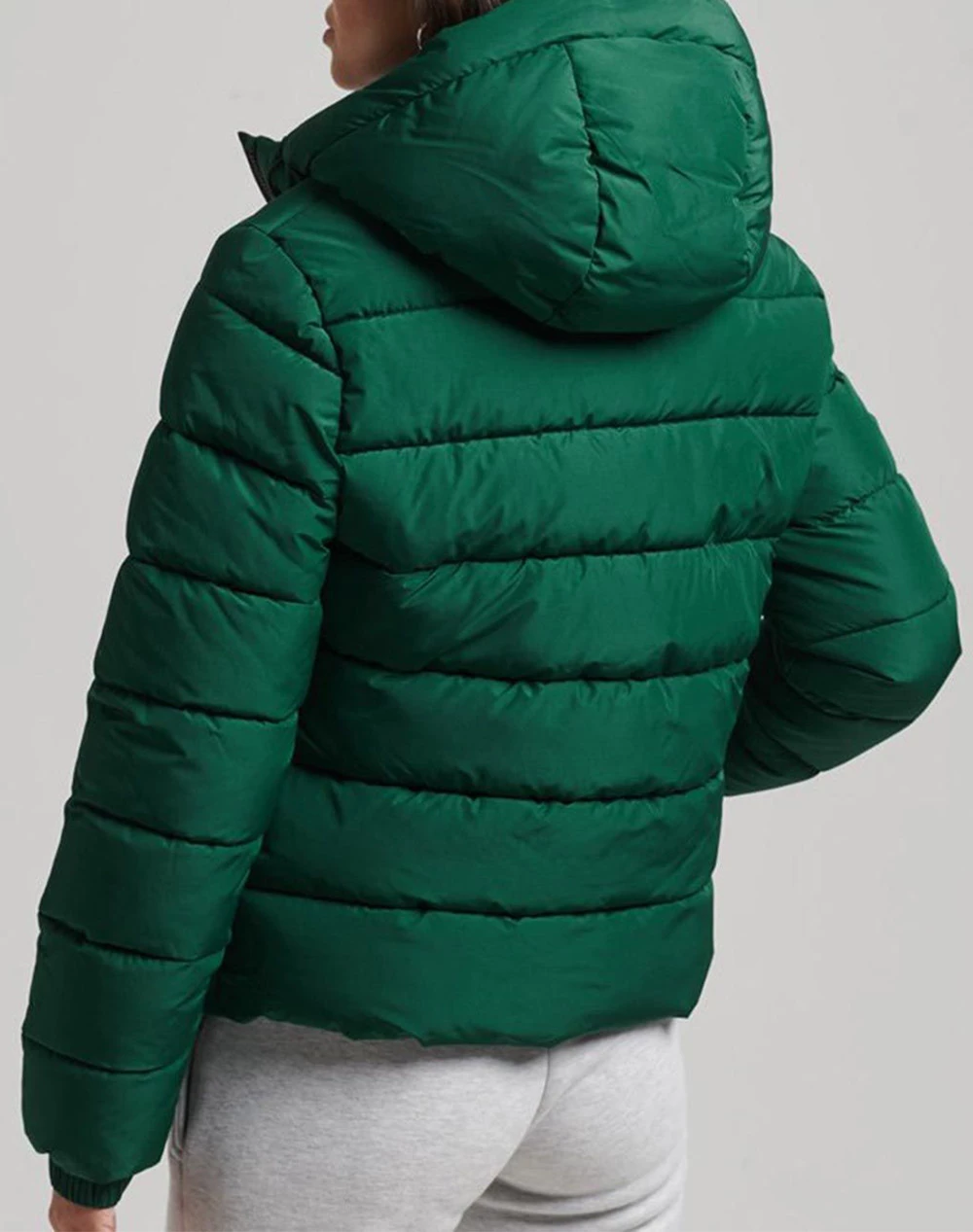 Γυναικείο μπουφάν τύπου puffer σε κανονική γραμμή, με πλαινές τσέπες και ρυθμιζόμενη κουκούλα. ( Σύνθεση: 100% Πολυεστέρας )