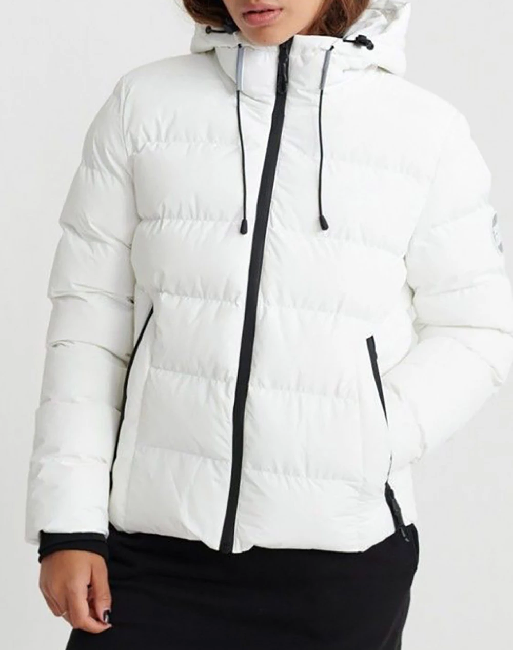 Γυναικείο μπουφάν τύπου puffer σε κανονική γραμμή, με πλαινές τσέπες και ρυθμιζόμενη κουκούλα. ( Σύνθεση: 100% Πολυεστέρας )