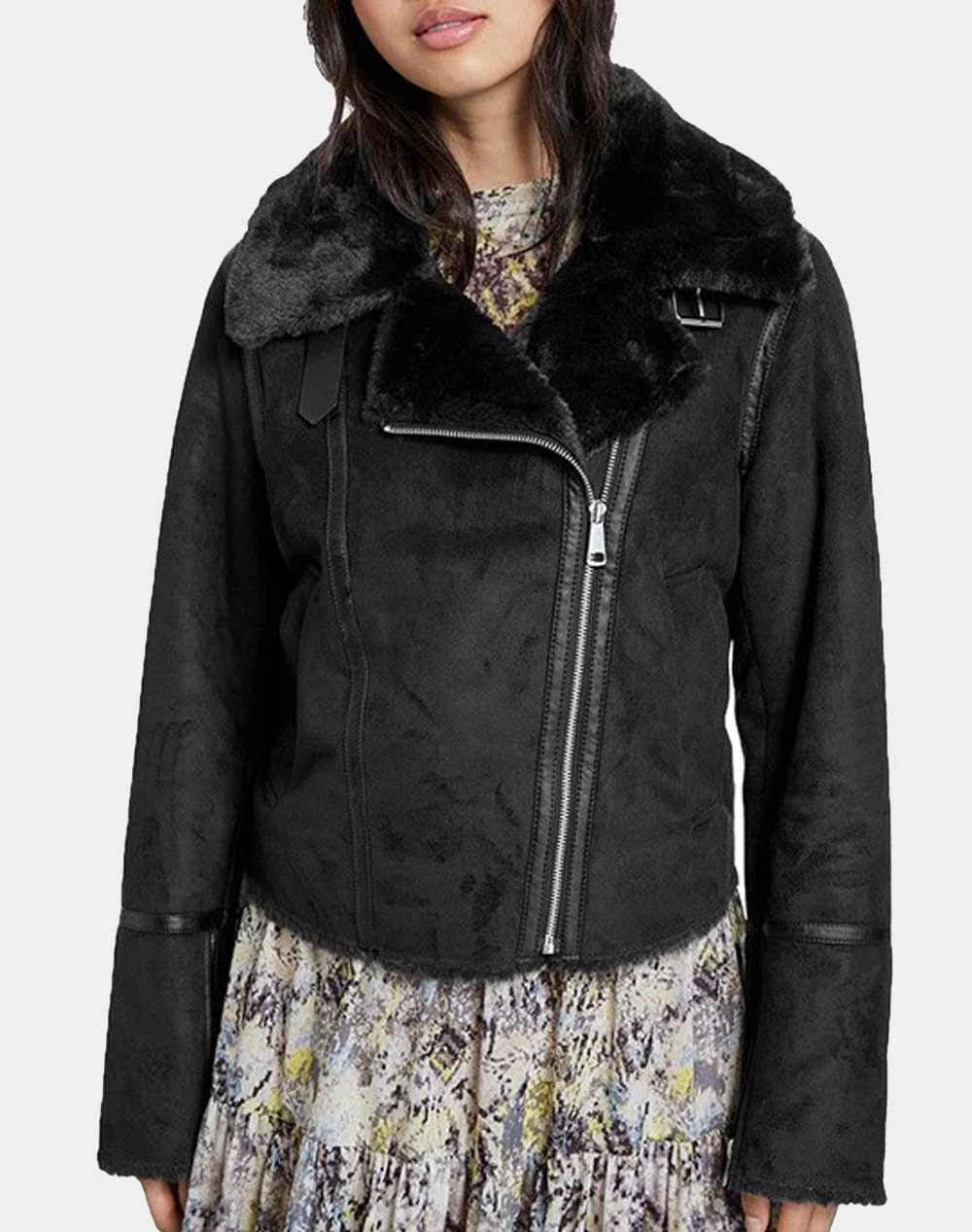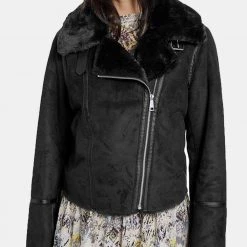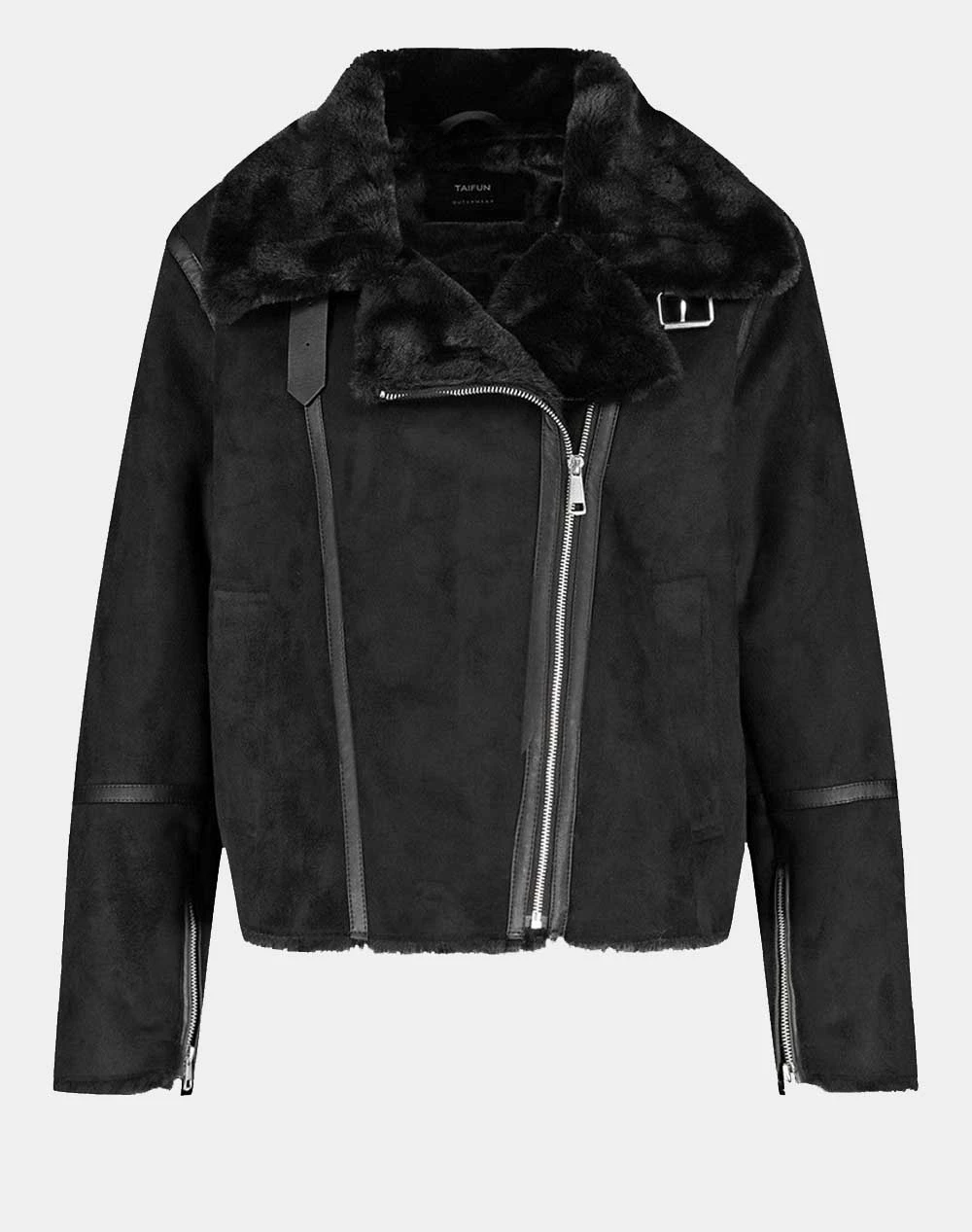 Γυναικείο μπουφάν τύπου biker σε κανονική γραμμή, με λοξό φερμουάρ, εσωτερική επένδυση απο συνθετική γούνα. ( Σύνθεση: 100% Πολυεστέρας )