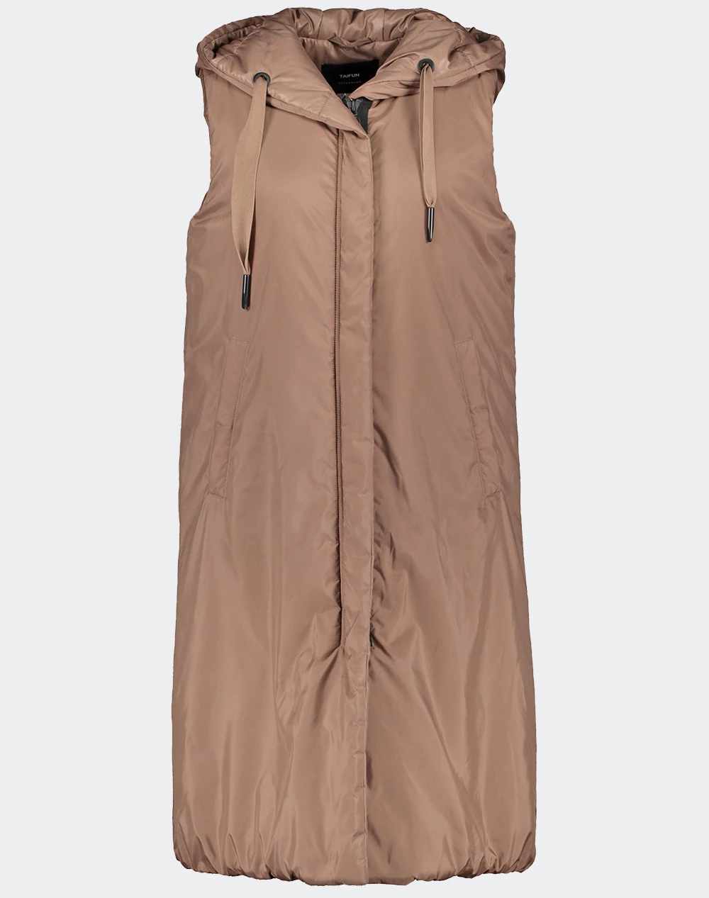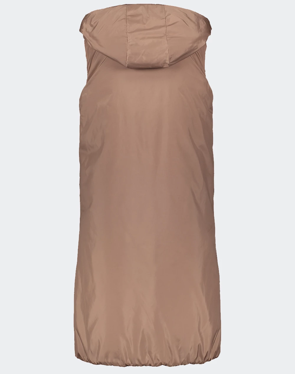 Γυναικείο αμάνικο μπουφάν τύπου puffer, με κουκούλα και κλείσιμο με φερμουάρ. (Σύνθεση: 100% Πολυεστέρας)