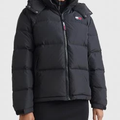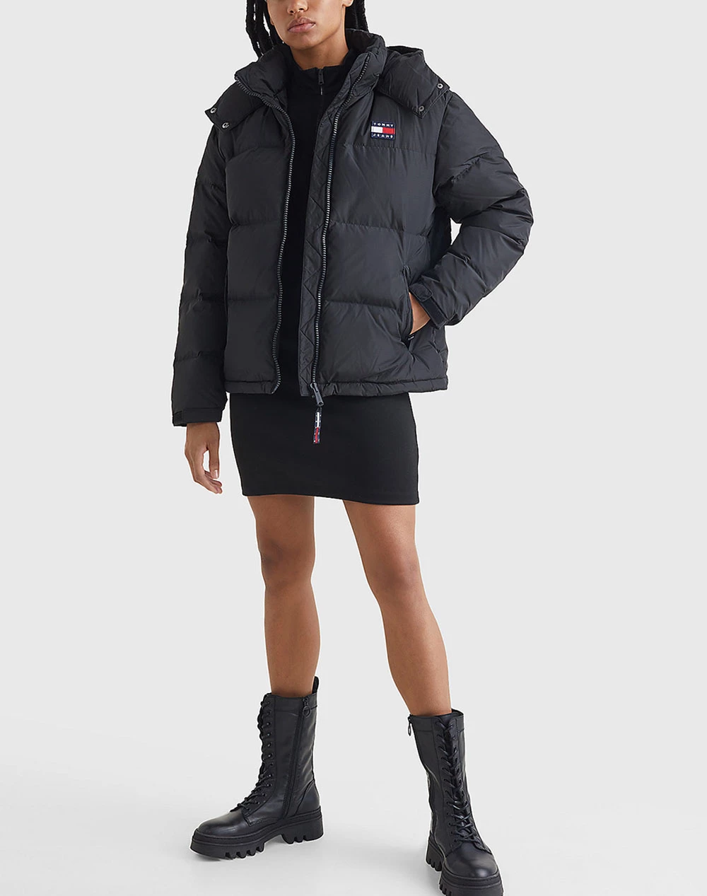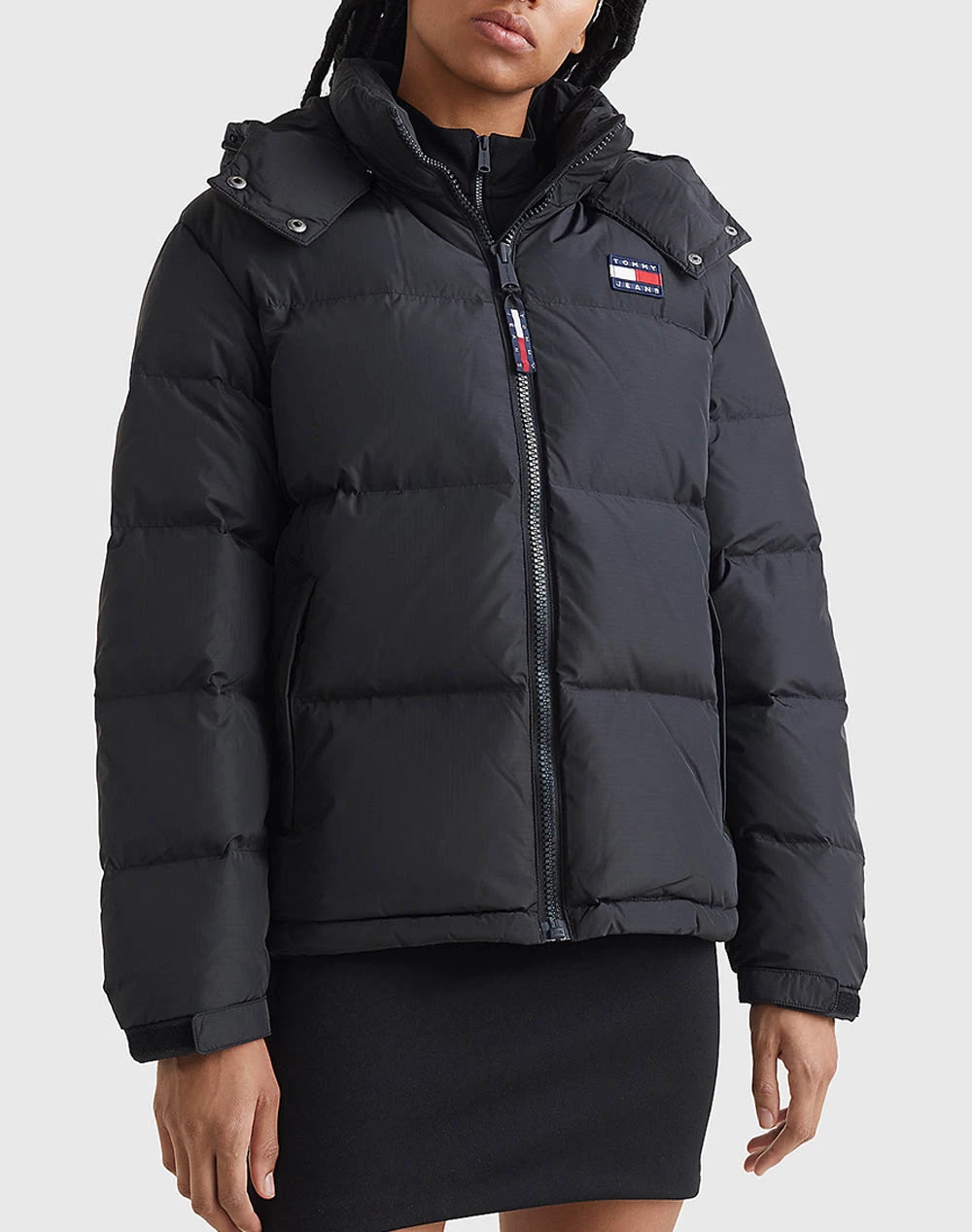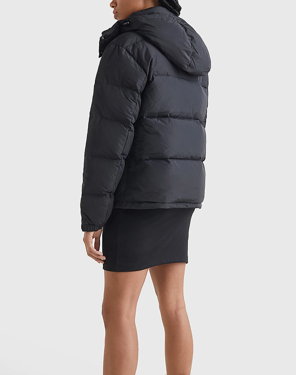 Γυναικείο μπουφάν πουπουλένιο, σε κανονική γραμμή, με αποσπώμενη κουκούλα. ( Σύνθεση: 100% Πολυεστέρας )