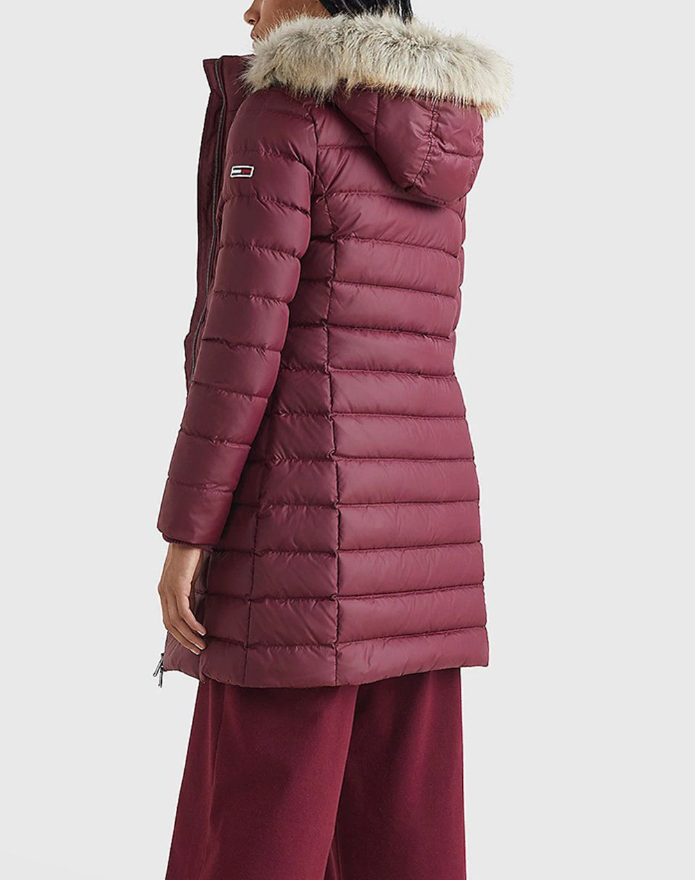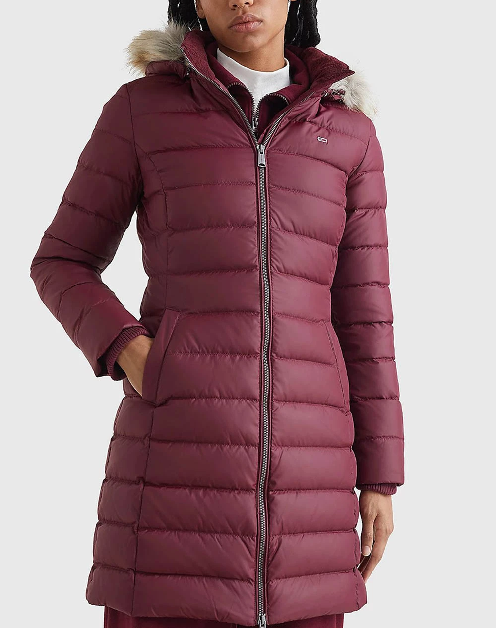 Γυναικείο μπουφάν με όψη καπιτονέ, midi μήκος, κουκούλα με αποσπώμενη γούνα, πλαινές τσέπες και κλείσιμο με φερμουάρ. ( Συνθεση: 100% Ανακυκλωμένος Πολυαστέρας )