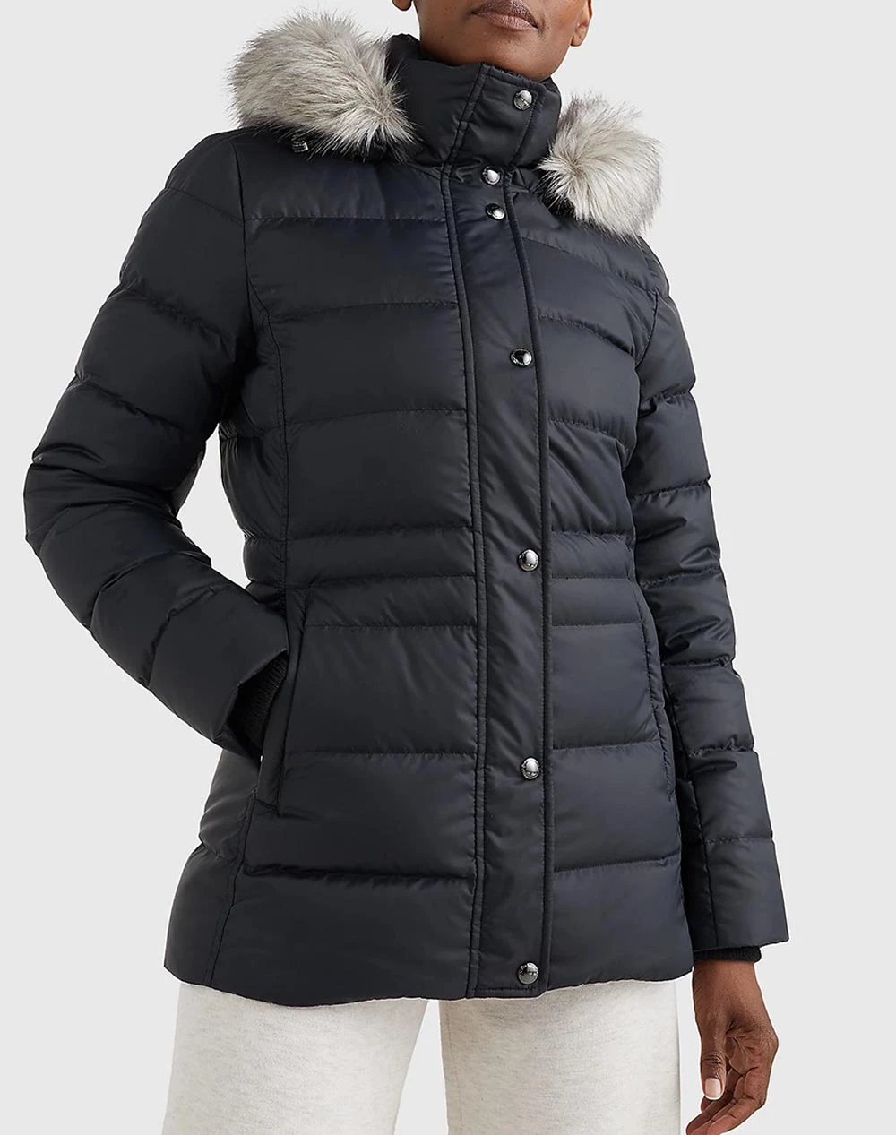 Γυναικείο μπουφάν parka σε κανονική γραμμή, με κουκούλα με γούνα, τσέπες στο πλάι και κλείσιμο με φερμουάρ και κουμπιά. ( Σύνθεση: 100% Πολυεστέρας )