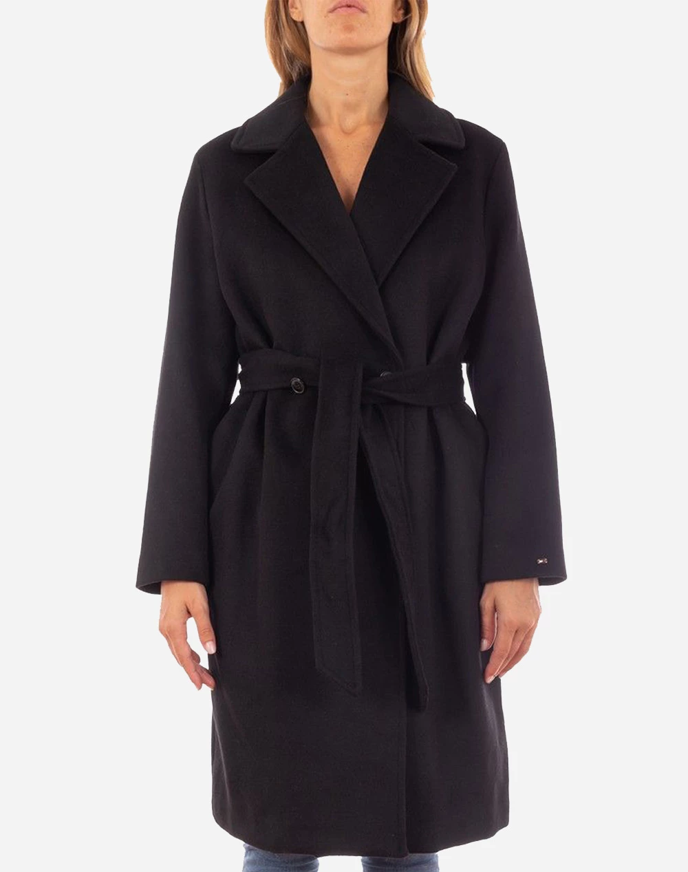 Γυναικείο παλτό σε κανονική γραμμή, με γιακά με πέτο, τσέπες στο πλάι και θηλιές και ζώνη στη μέση. ( Σύνθεση: 60% Πολυεστέρας, 40% Μαλλί )